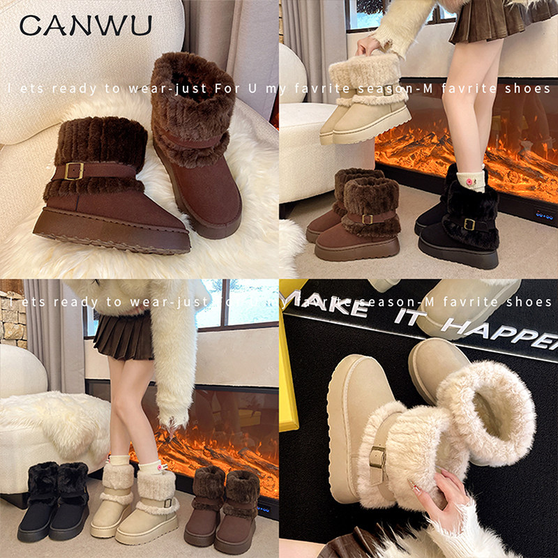 白鹿同款毛毛雪地靴女大码鞋2025新款冬季加绒保暖皮毛一体短靴子