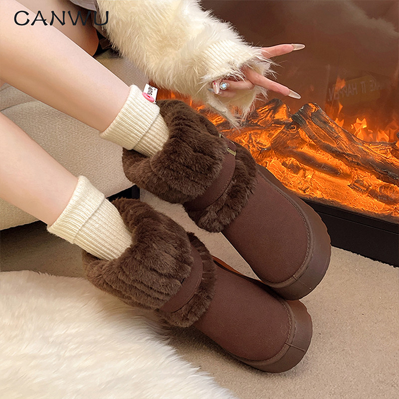 低帮厚底雪地靴女2025新款冬季懒人一脚蹬毛毛棉鞋加绒加厚女鞋子