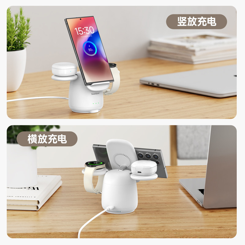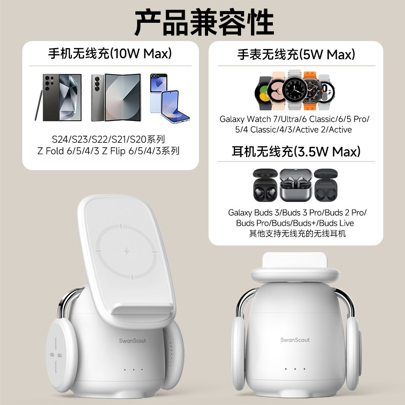 白鹄SwanScout707S 适用三星Galaxy S25系列Z Fold7手机三星Watch876手表buds 3/2 pro耳机三合一无线充电器