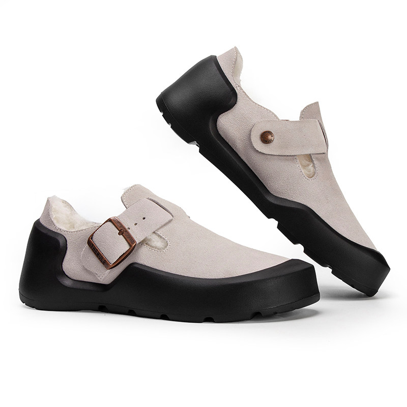 米霏~灰色厚底勃肯鞋女加绒内增高一脚蹬毛毛鞋博肯棉鞋大码女鞋