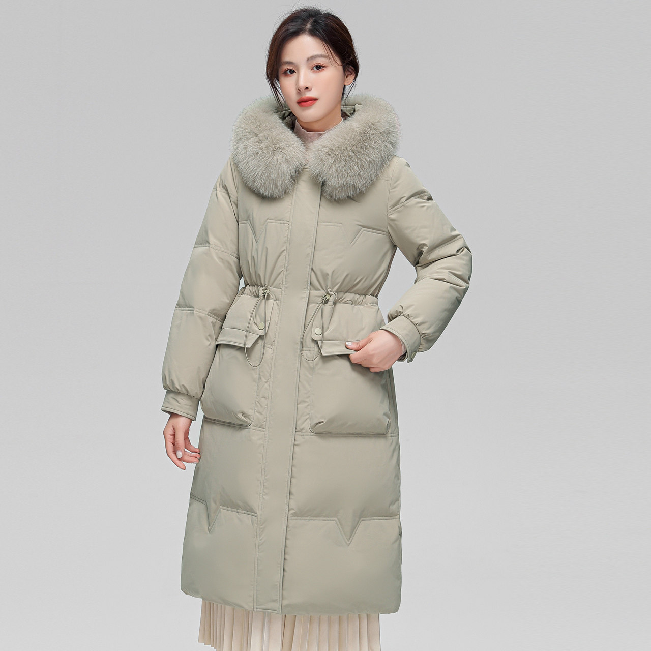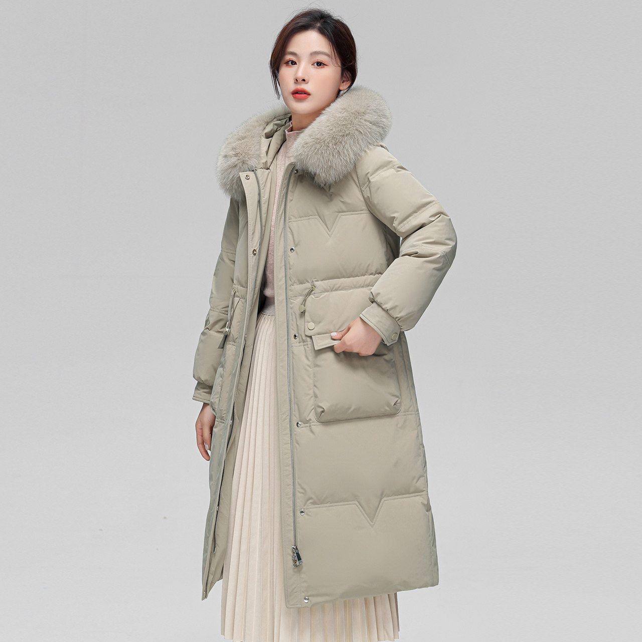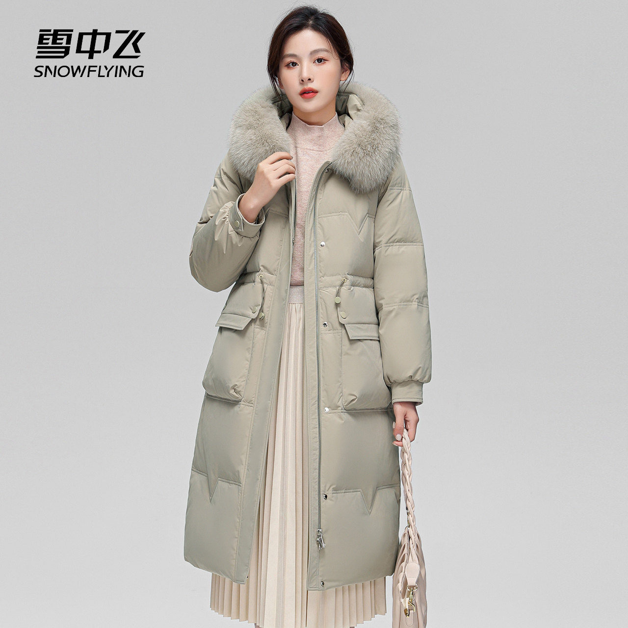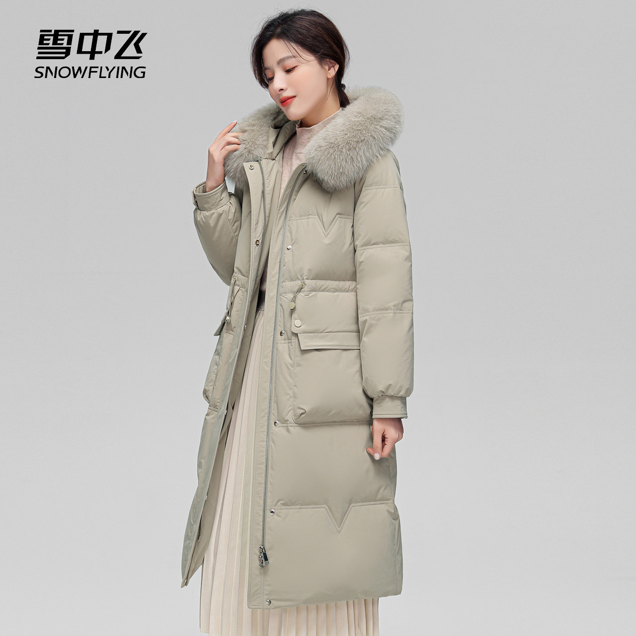 雪中飞冬新款时尚休闲防寒保暖狐狸毛领女士长款羽绒服
