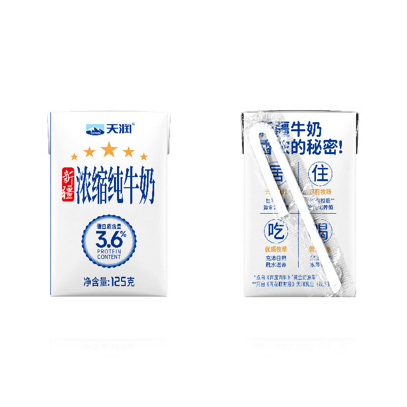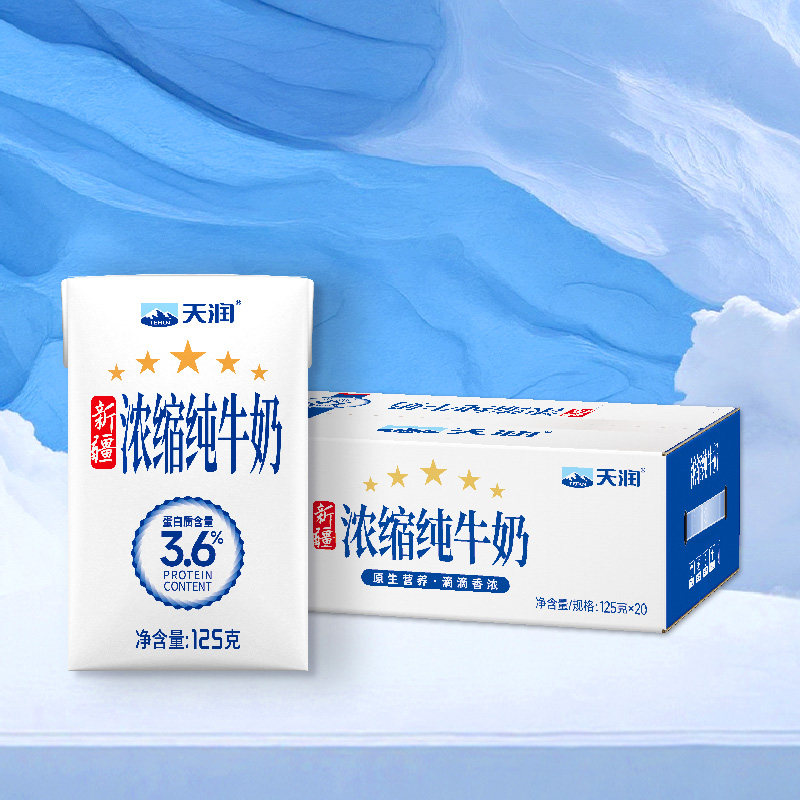 新疆天润浓缩纯牛奶康美砖125g*20盒装营养早餐纯奶
