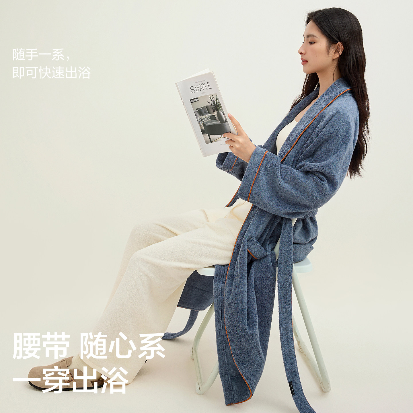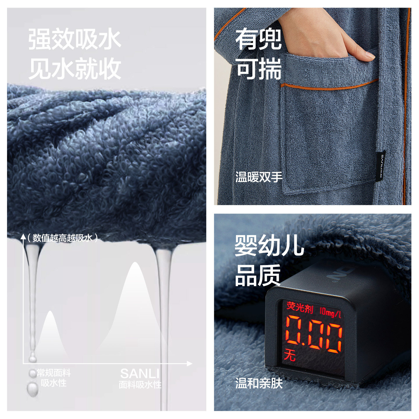 三利纯棉浴袍毛巾料四季通用男女吸水速干睡袍五星酒店纯棉浴衣全