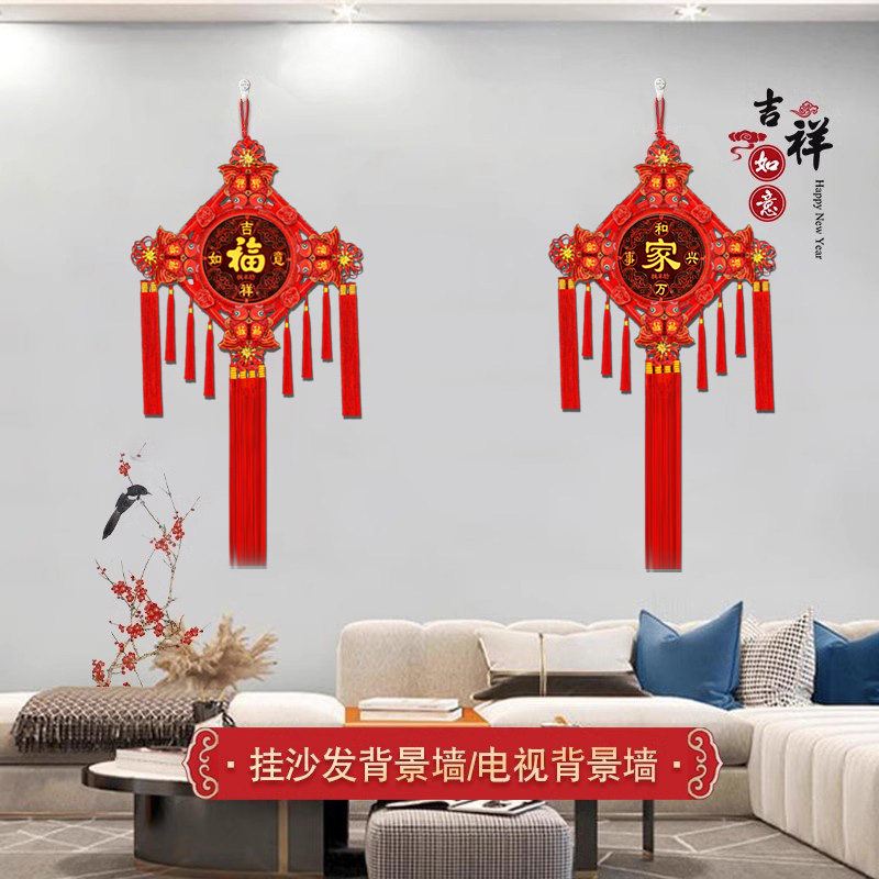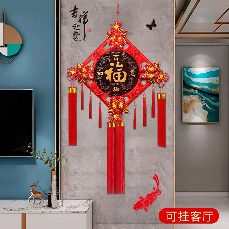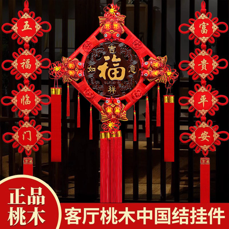 中国结挂件客厅大号桃木福字中国结玄关乔迁平安结背景墙装饰壁挂