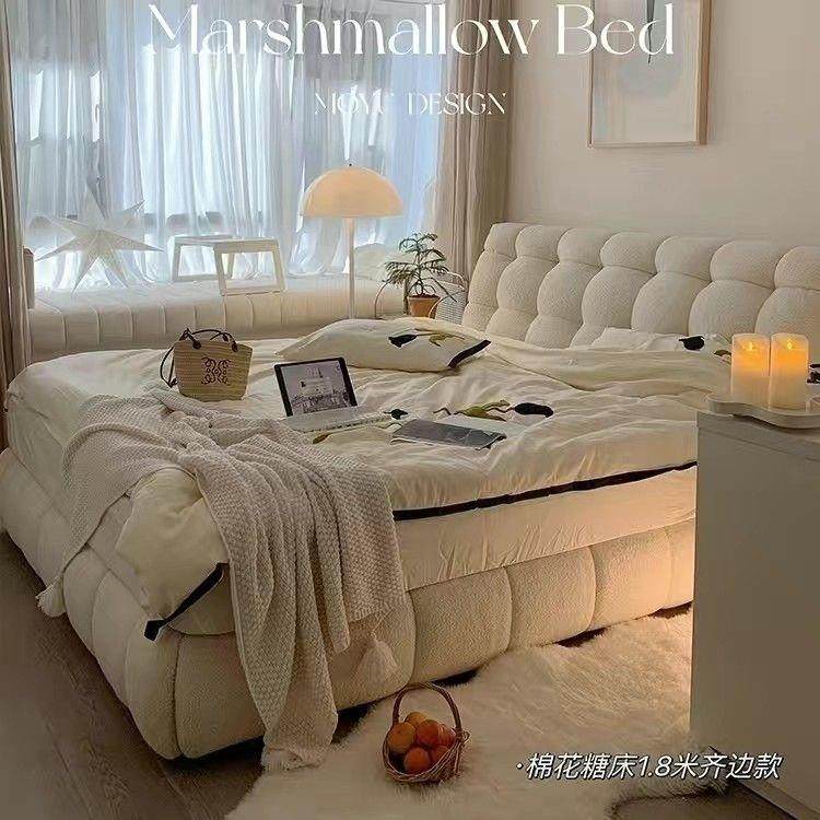 棉花糖轻奢榻榻米布艺奶油风泡芙双人床现代简约2024新款主卧大床