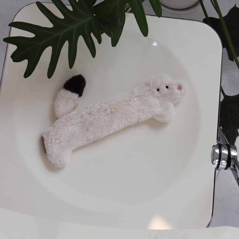 韩国正品hozumi 毛绒缆线细物化妆收纳袋笔袋扁平文具袋 奶油雪貂