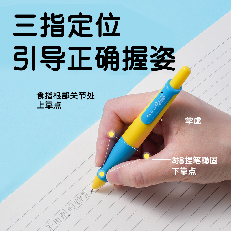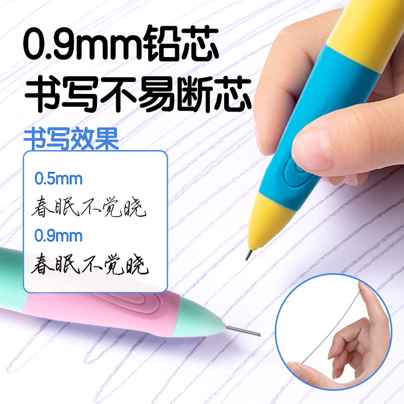 得力定制刻字自动铅笔0.9mm小学生一二年级正姿铅笔高颜值幼儿园专用hb自动笔2b儿童按动控笔训练粗免费刻字