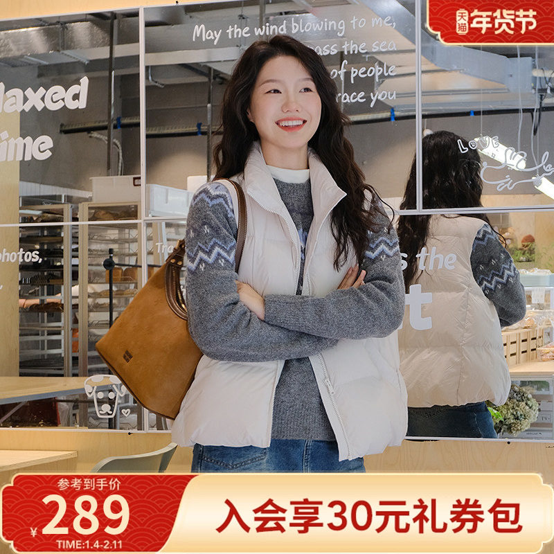 骆驼女装羽绒服马甲2025秋冬白色轻薄短款外穿保暖加厚背心外套女
