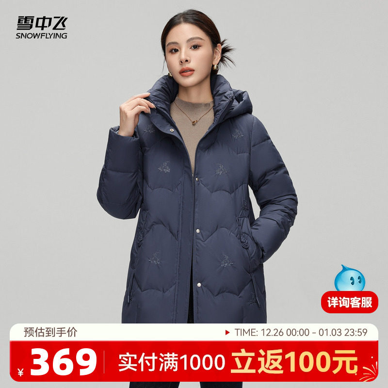 雪中飞2025冬新款女士中长款羽绒服连帽妈妈款加厚御寒保暖简约