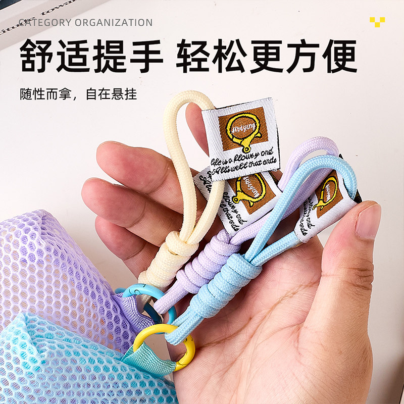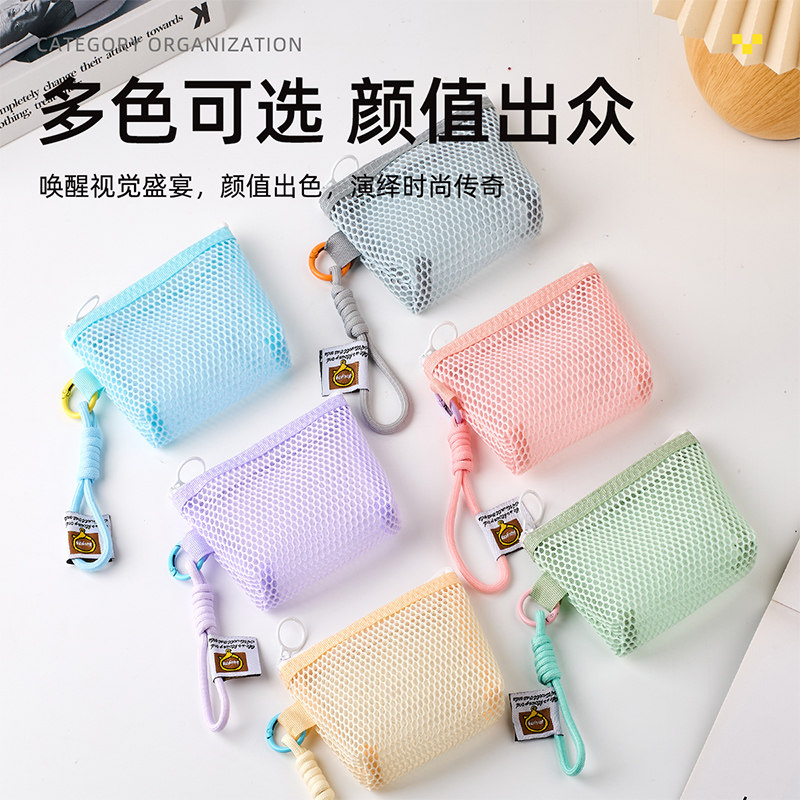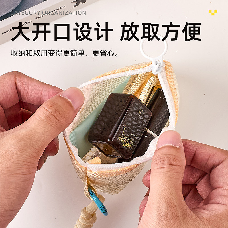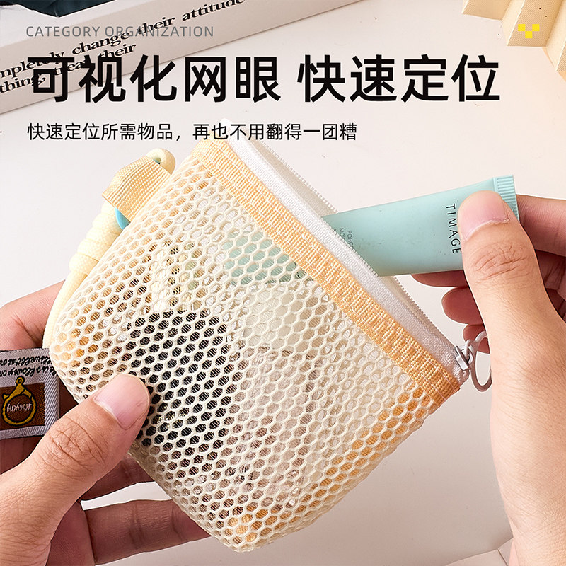 立体三角网格收纳袋新款大容量透明可手提网纱袋迷你便携随身零钱数据线钥匙口红杂货收纳包简约多功能豆腐包