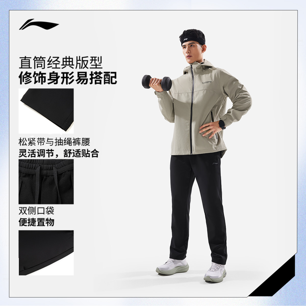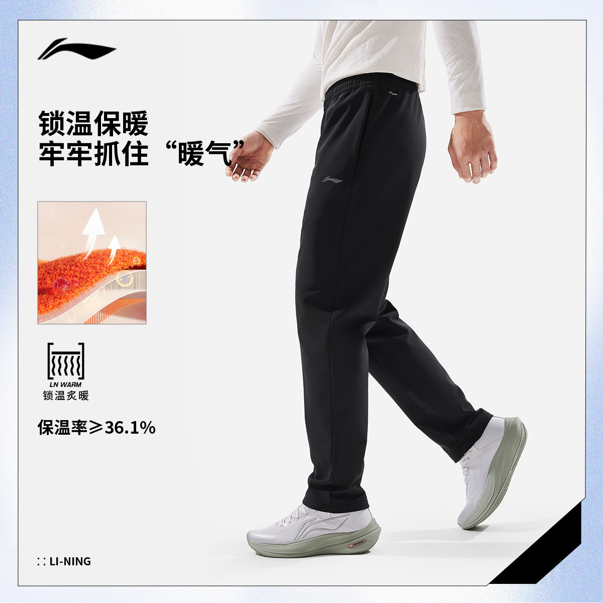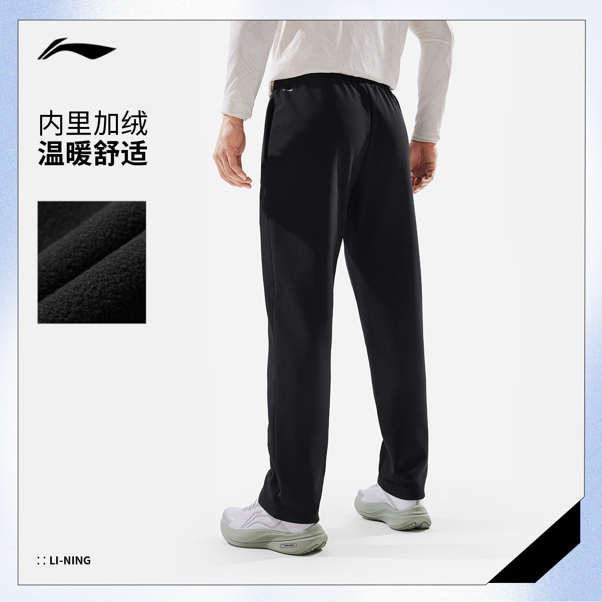 李宁航天动态保暖运动长裤男新款健身跑步裤子冬季加绒直筒梭织裤