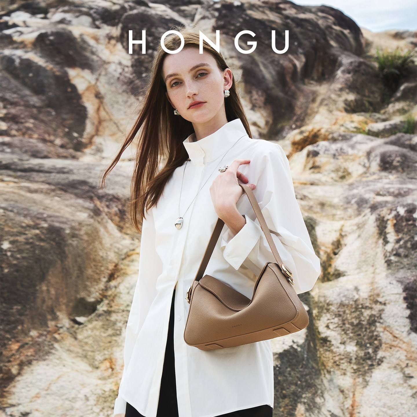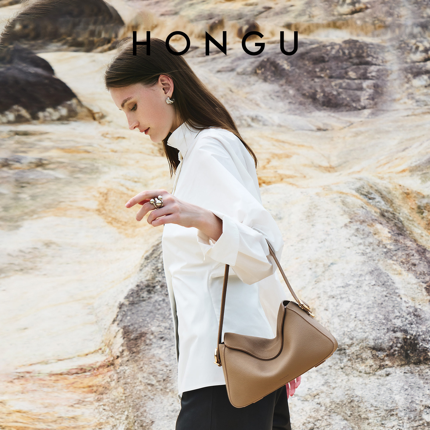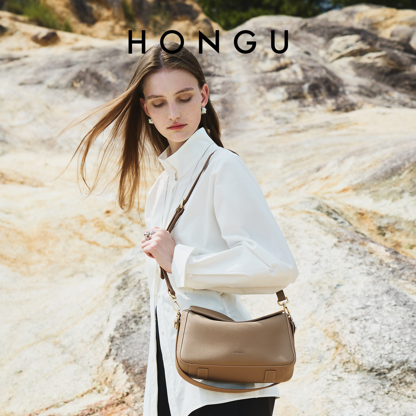 红谷包包2025新款质感真皮单肩腋下包女式通勤外出斜挎包休闲女包