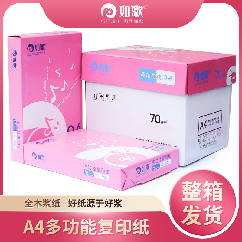 如歌a4纸打印纸整箱包邮70g2500张a4复印纸实惠装学生画画草稿纸a四纸80g双面打印复印白纸办公用纸a3打印纸