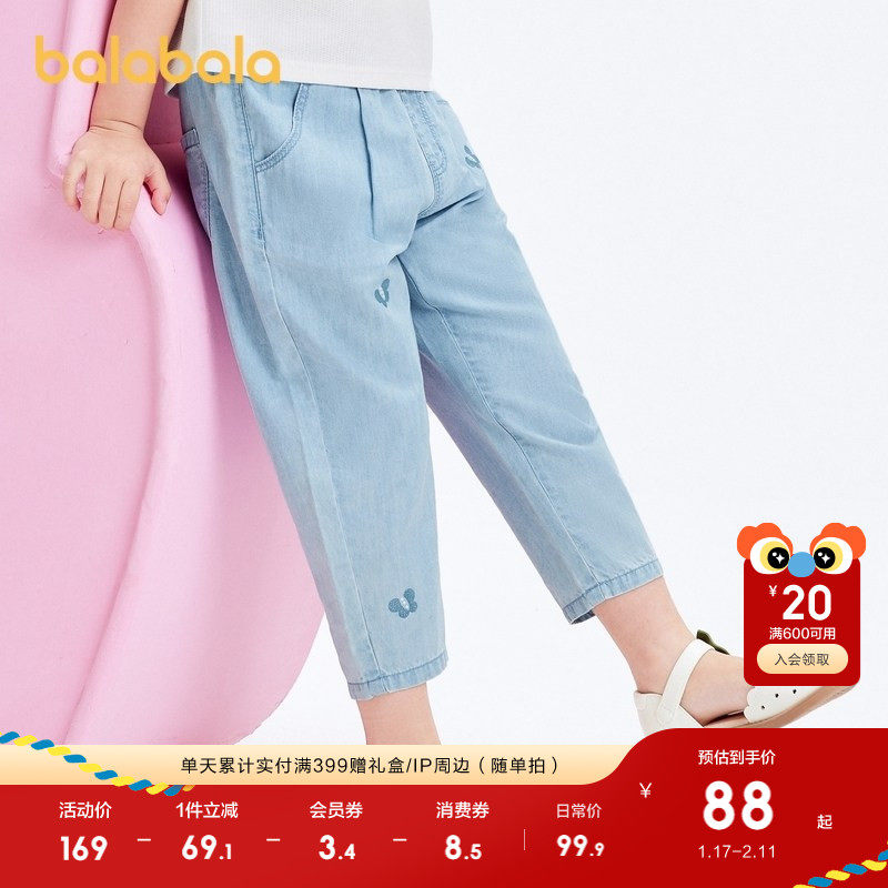 巴拉巴拉童装儿童裤子女童春夏装长裤牛仔裤透气复古百搭休闲洋气