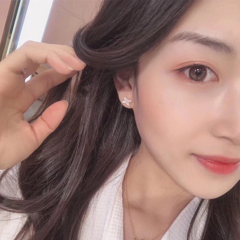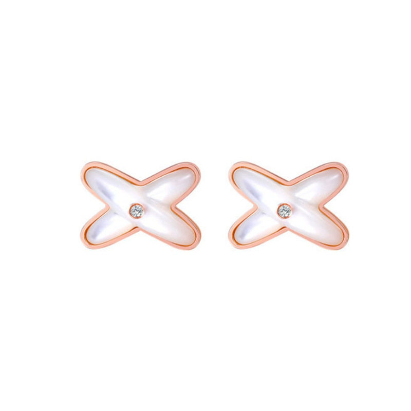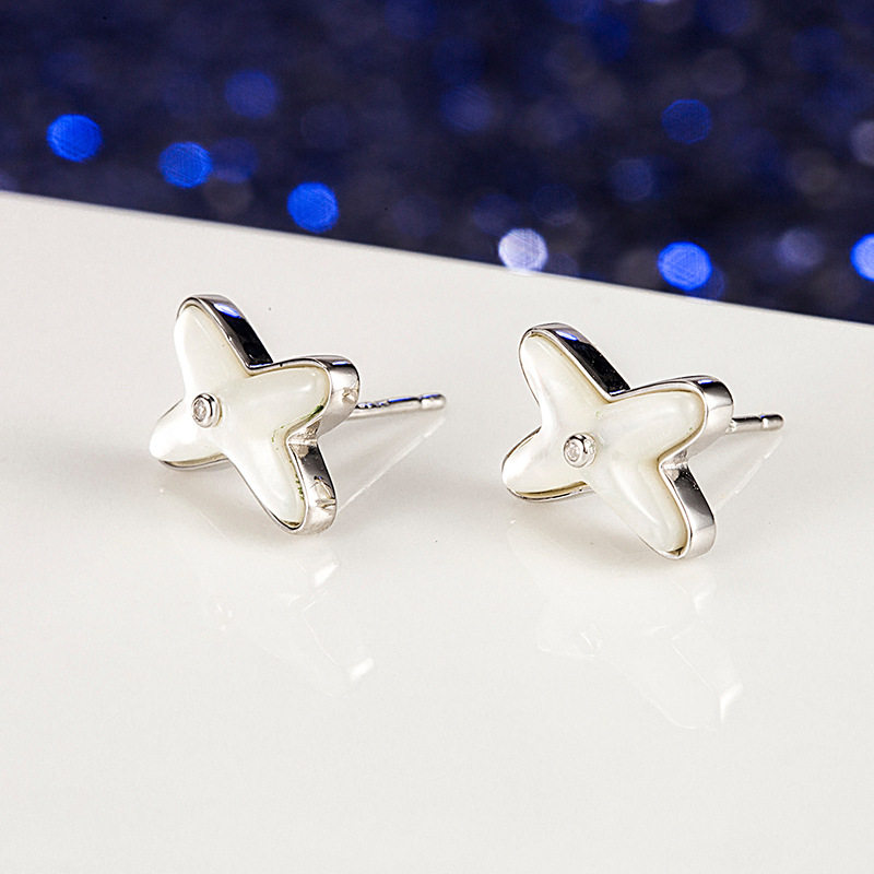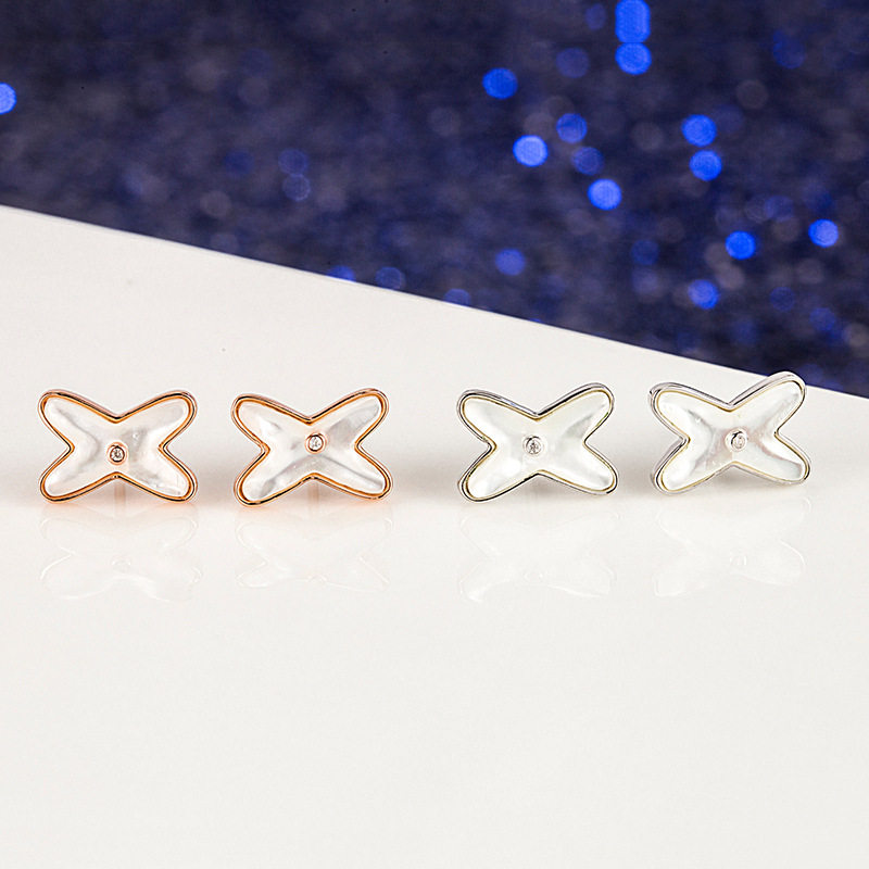 s925纯银白贝交叉耳钉韩版ins个性百搭字母X形天然白贝母网红耳饰