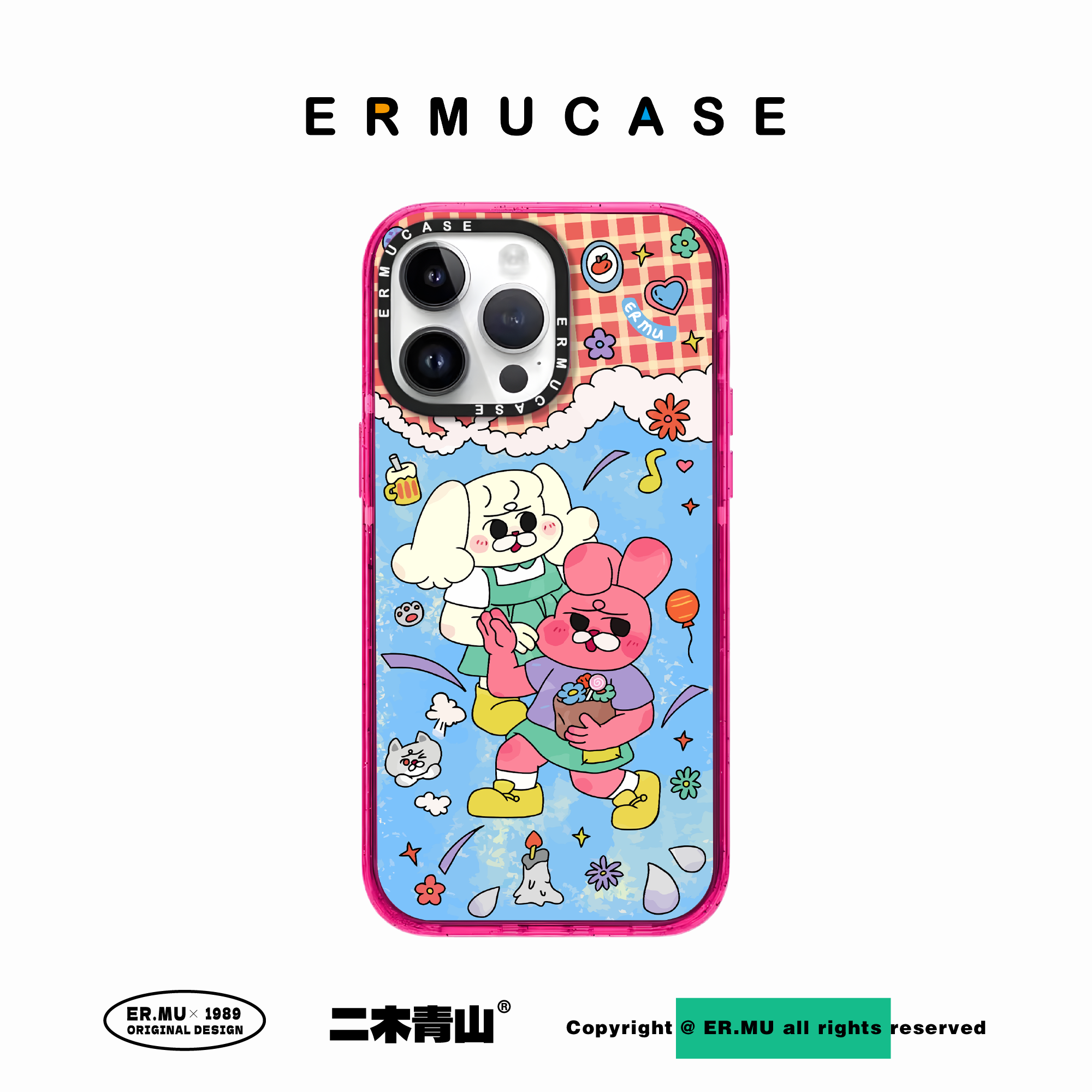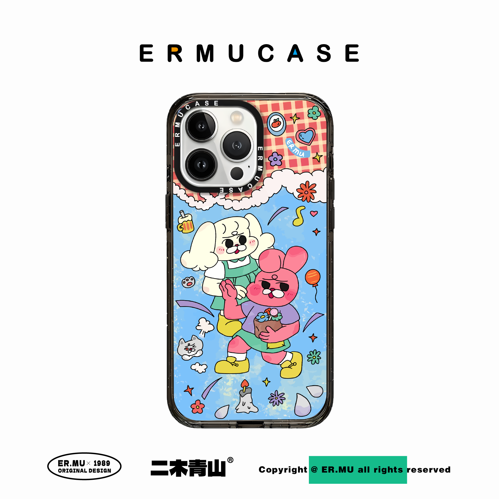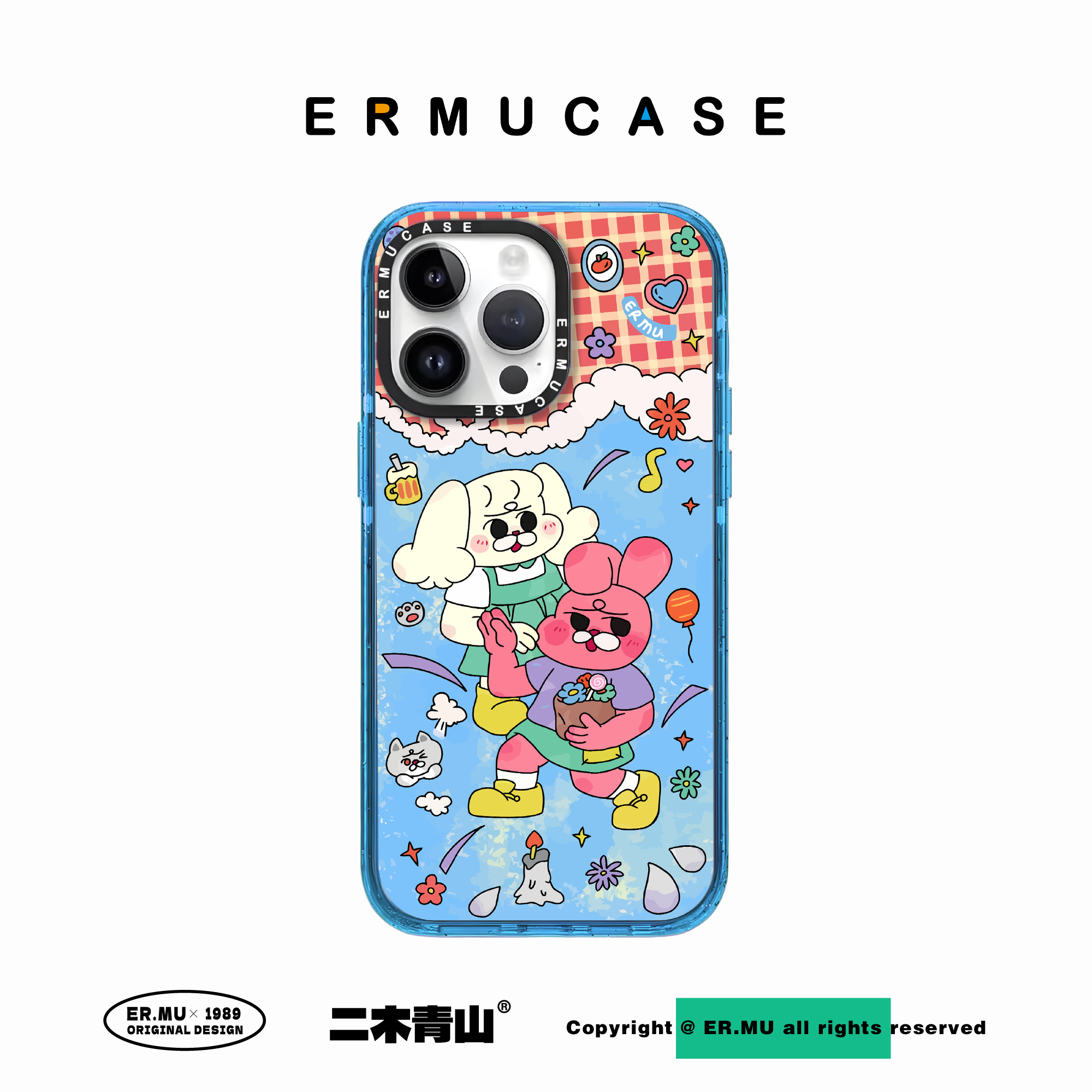 ERMUCASE二木青山卡通可爱时尚《萌趣情侣兔兔》适用于苹果iPhone17ProMax/17Pro/Air/16ProMax/15果冻手机壳