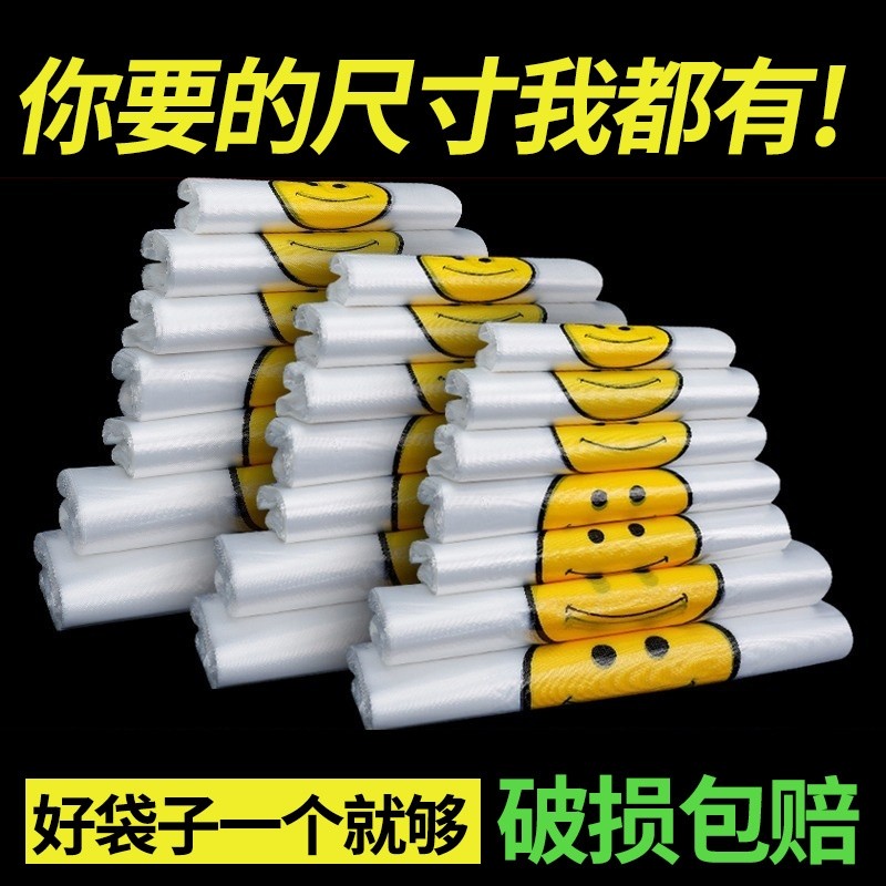 笑脸加厚透明塑料袋外卖垃圾袋商用打包袋购物袋方便手提袋子食品