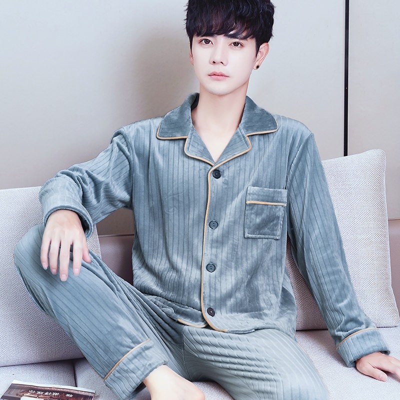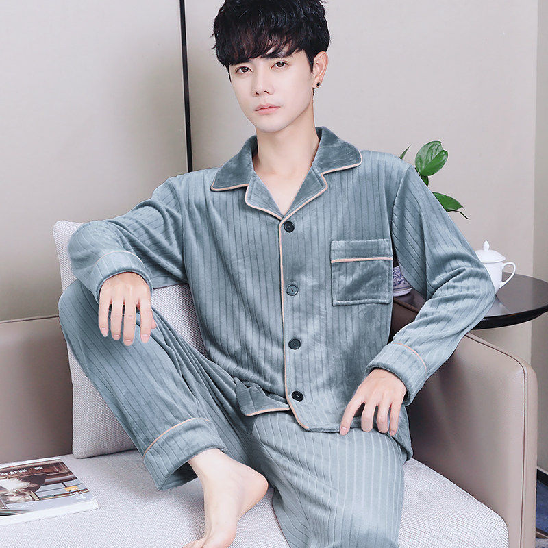 新款珊瑚绒睡衣男士秋冬款加厚套装加绒法兰绒男款冬季家居服大码