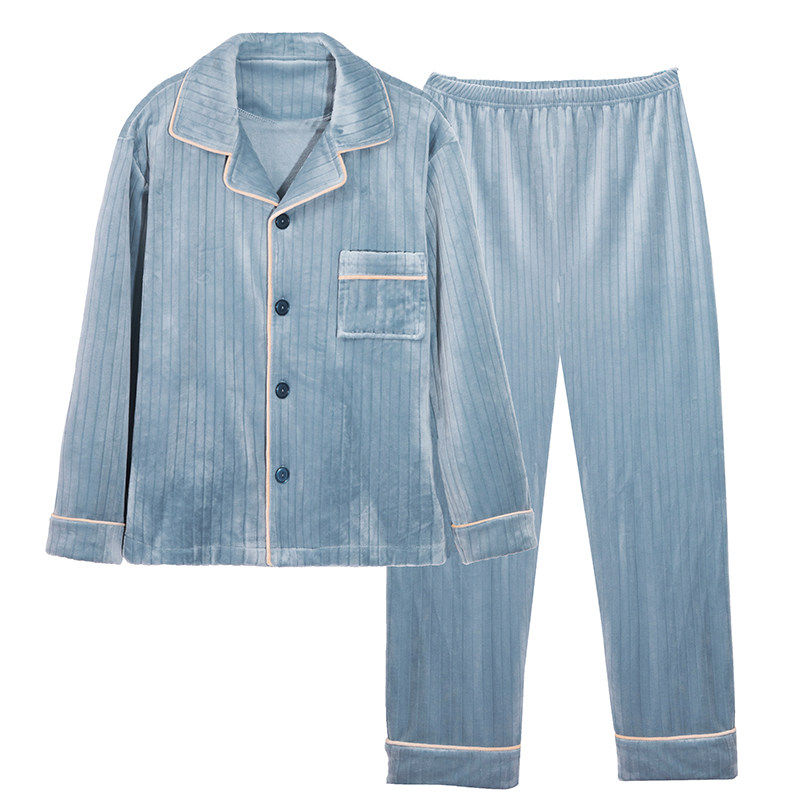 冬季珊瑚绒男士睡衣三层夹棉加厚加绒法兰绒秋冬款家居服保暖套装