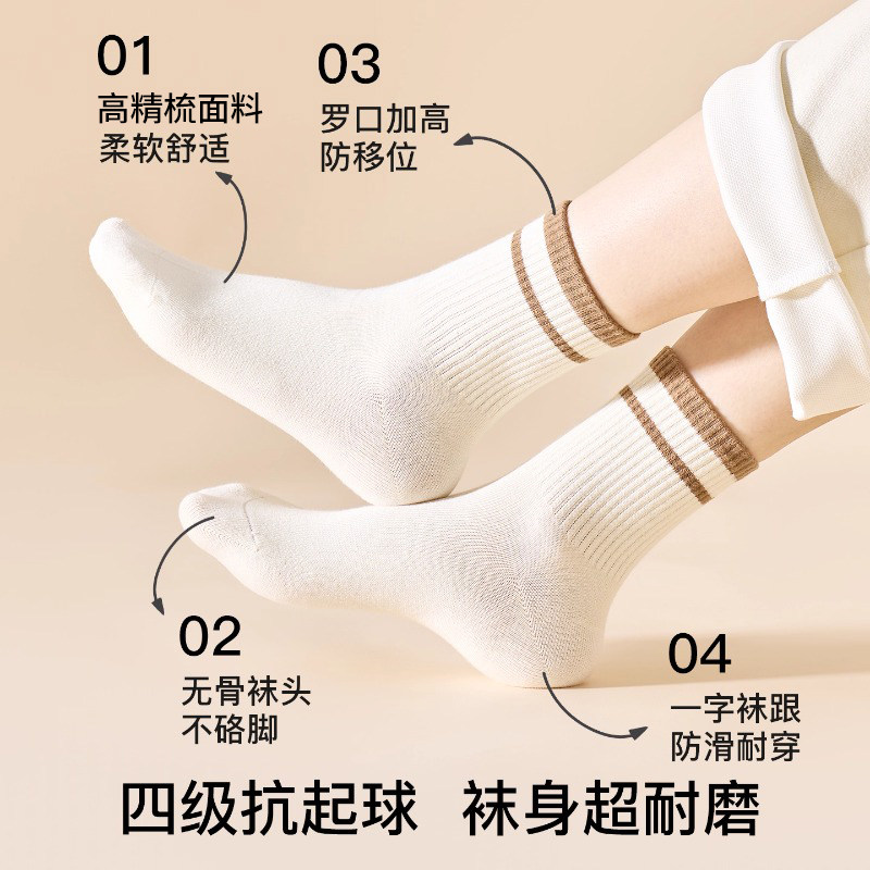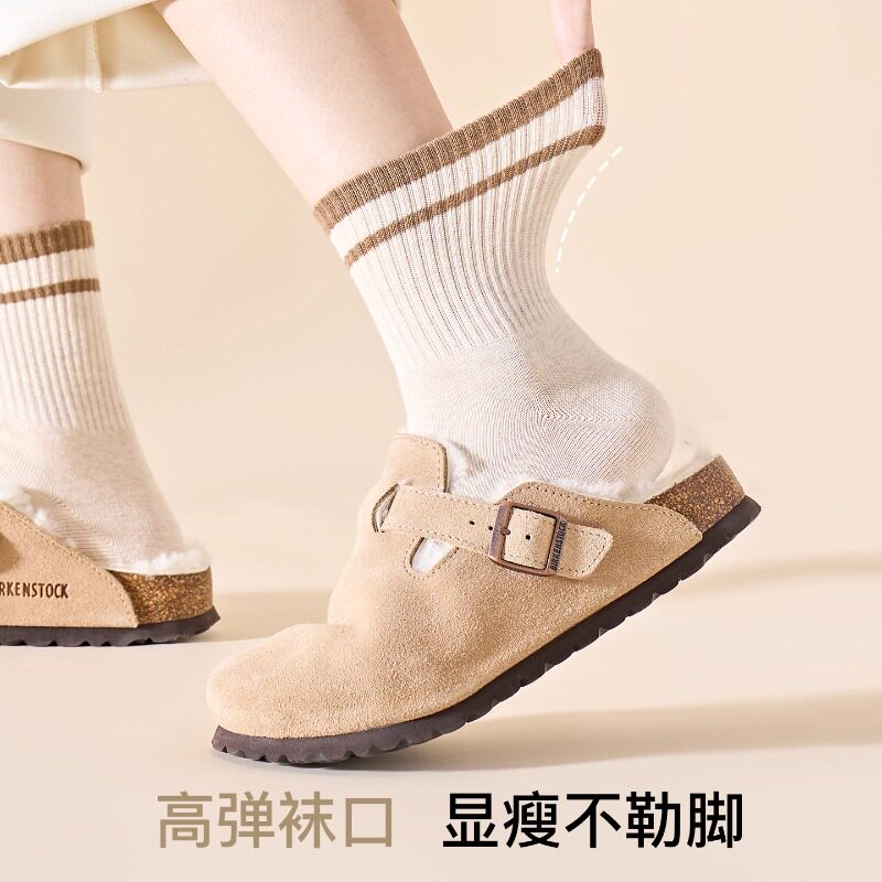 条纹袜子女款春秋季吸汗防臭运动中筒袜女士无骨保暖纯色月子长袜