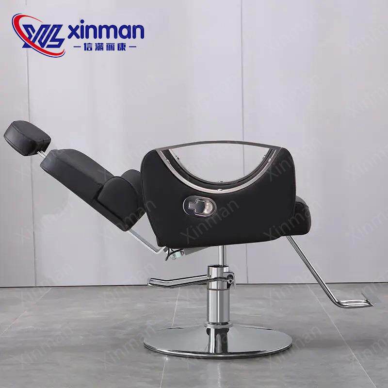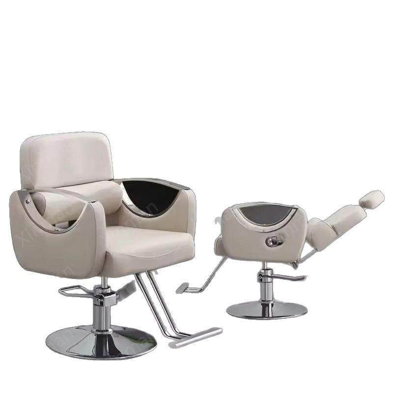 热卖剪发椅倾斜风格半躺胶合板框架铬底座钢脚凳美发椅发廊造型椅
