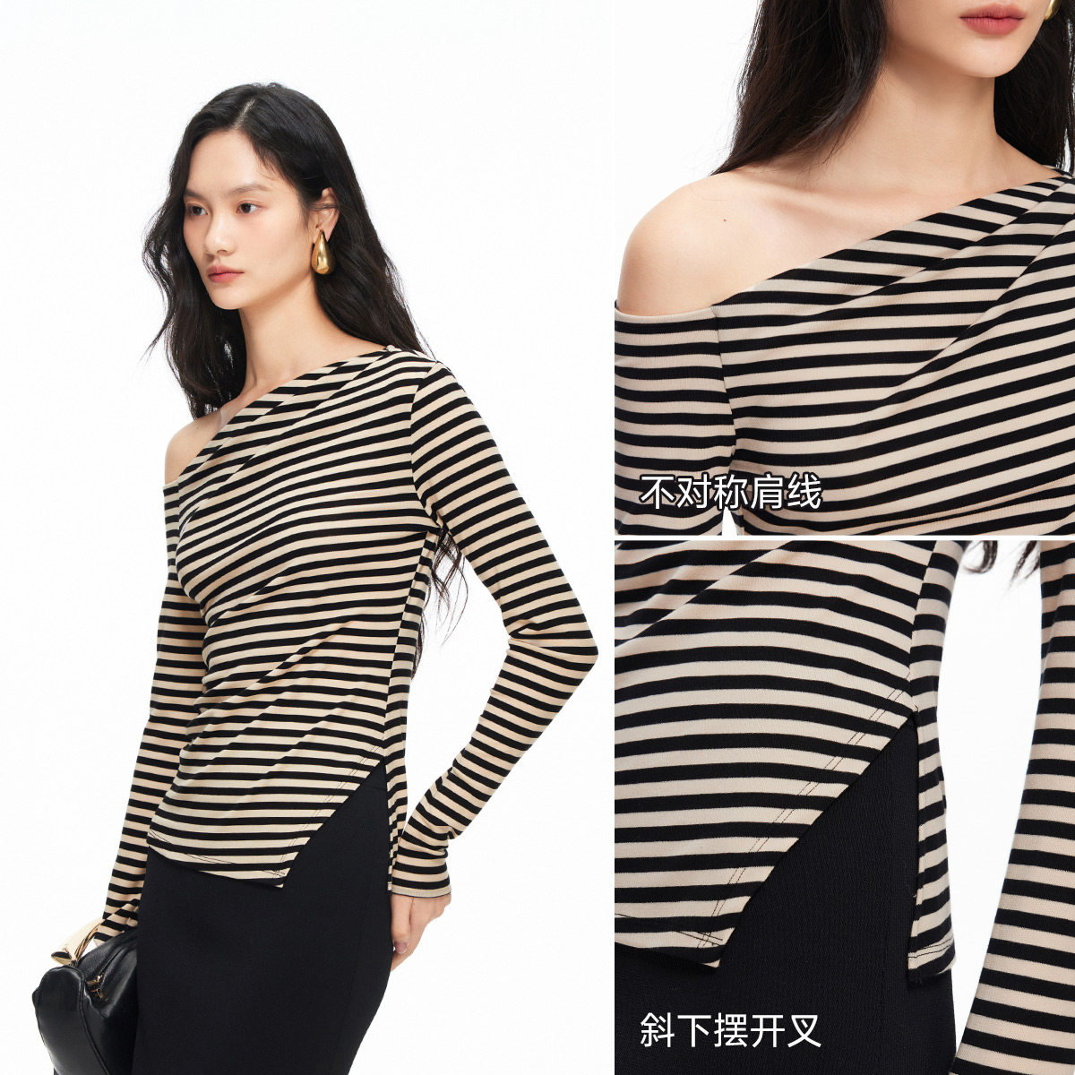 斜肩设计 优化颈部线条;舒适材质 软糯贴合