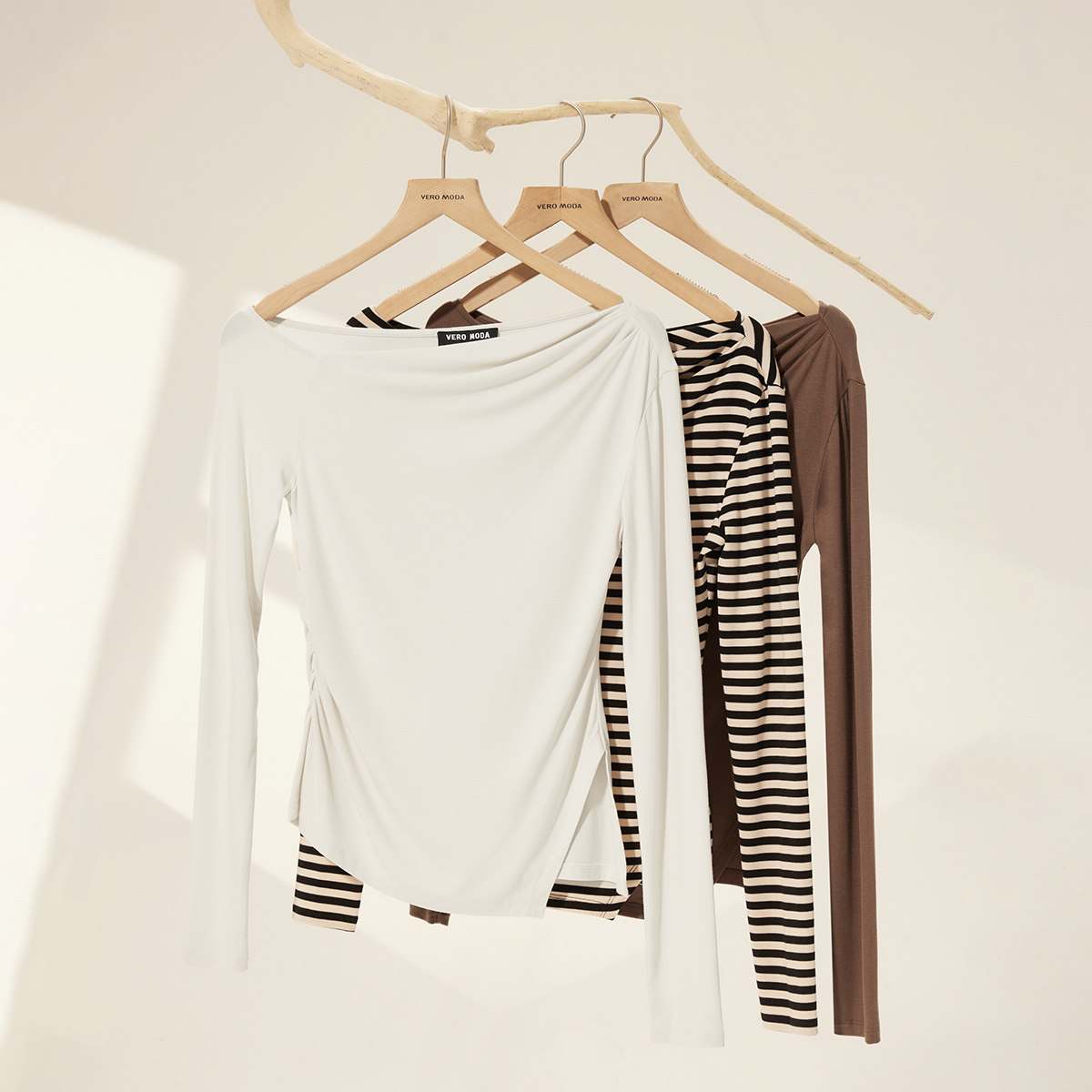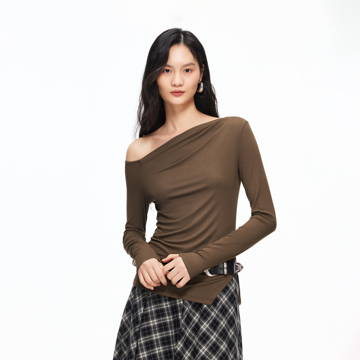 【柔光衫】Vero ModaT恤2026春季新款斜下摆开衩休闲斜肩上衣百搭