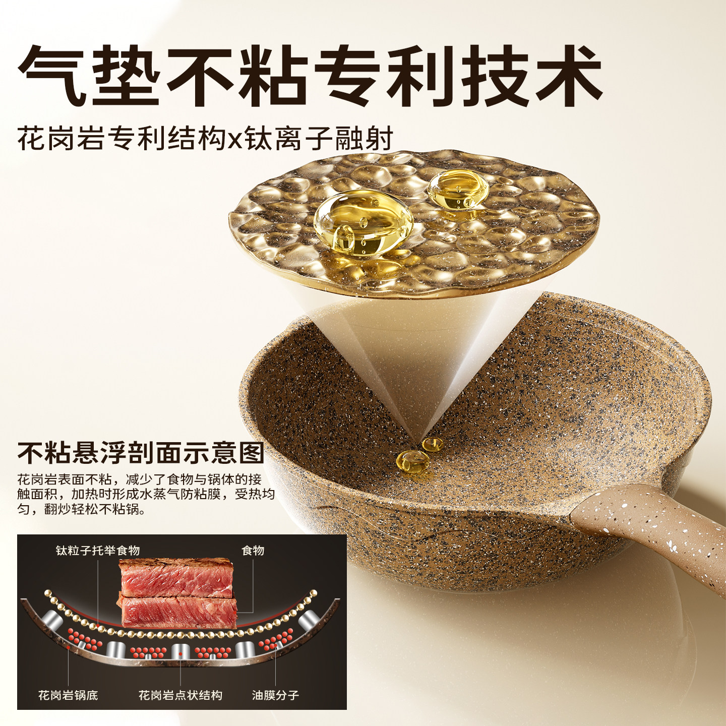 加深平底煎炒锅 花岗岩钛熔射 气垫不沾技术