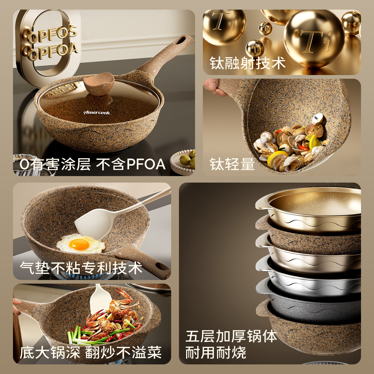 amercook阿尔菲塔花岗岩钛不粘锅家用炒菜锅平底锅加深煎锅小炒锅