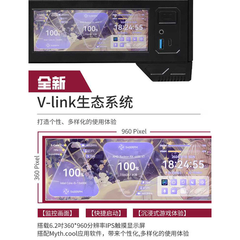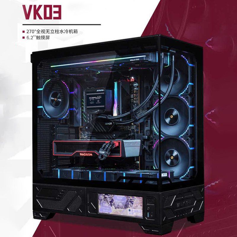 瓦尔基里VK03海景房机箱全视带6.2寸屏幕电脑水冷MATX机箱台式机