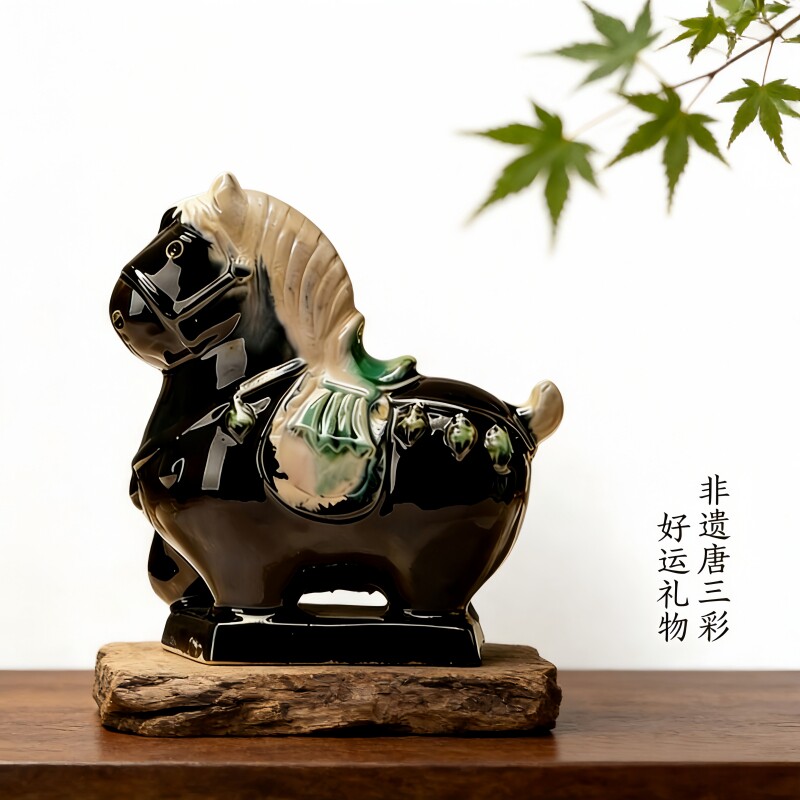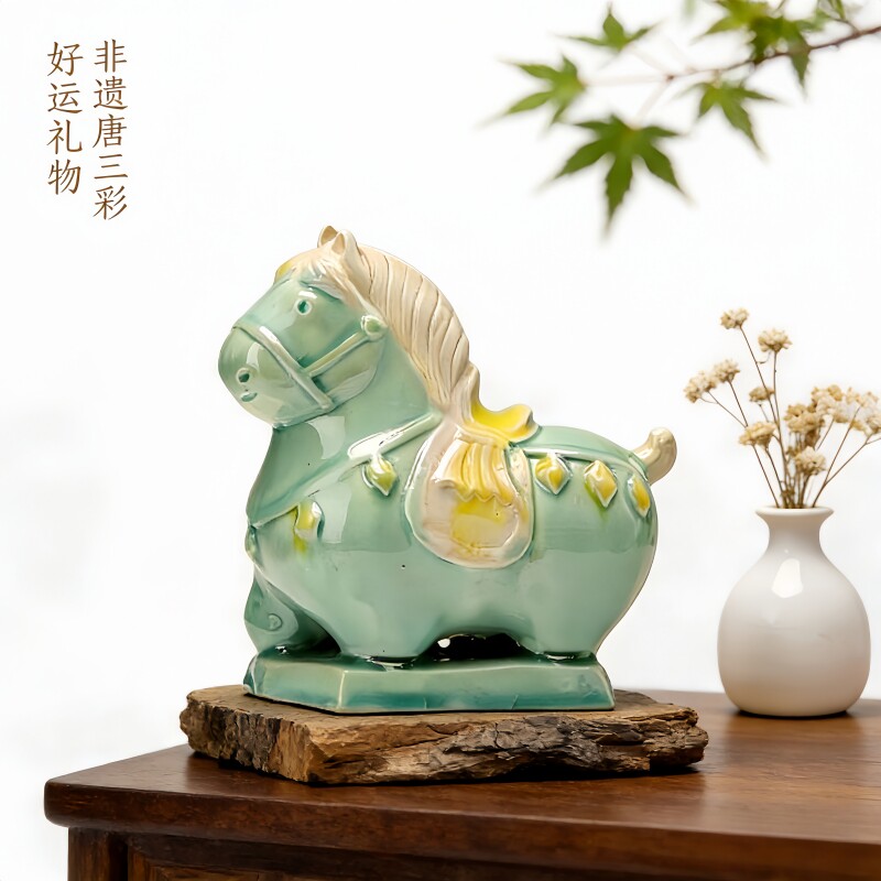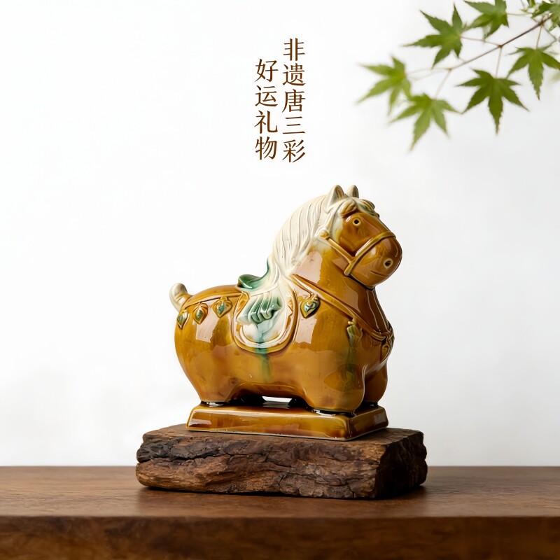 洛阳文创行万里小胖马客厅办公室摆件手工陶瓷工艺品旅游纪念礼物