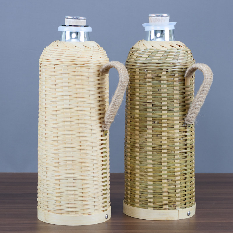 竹编热水瓶传统保温瓶家用暖水壶玻璃内胆老式开水瓶茶室木塞暖壶