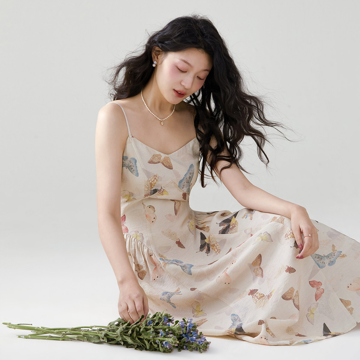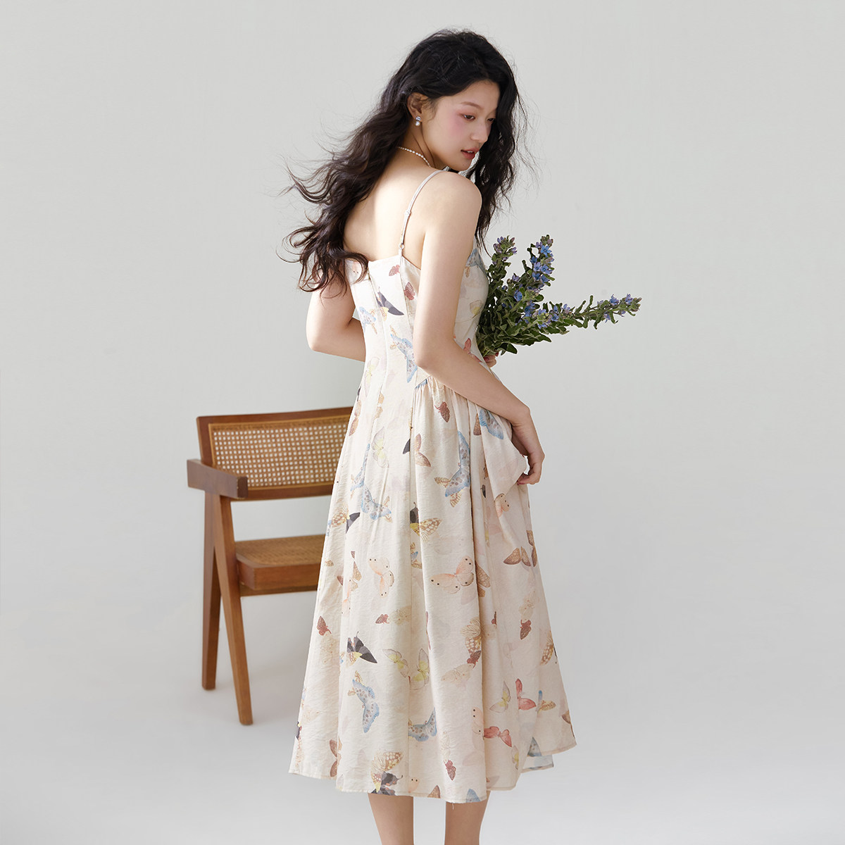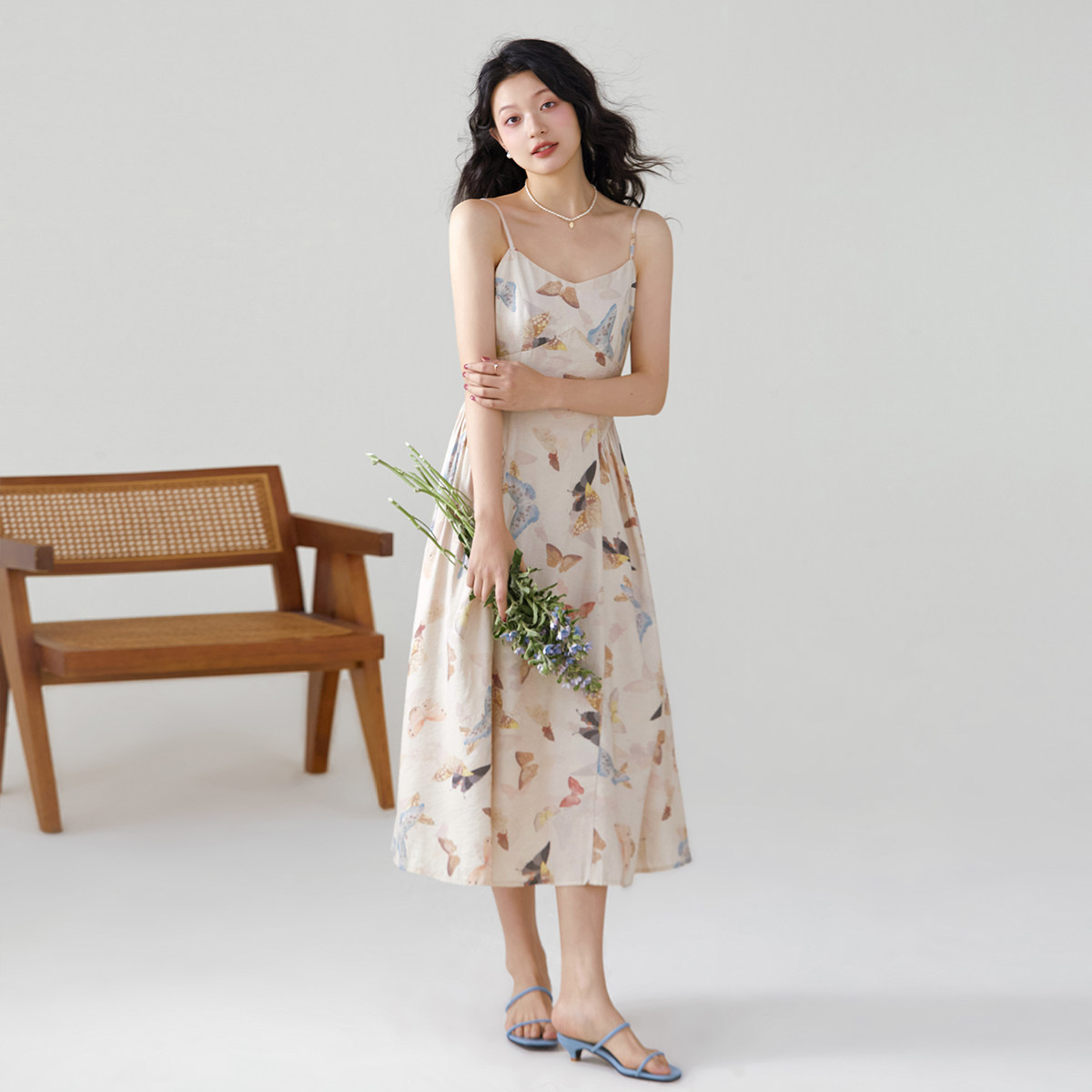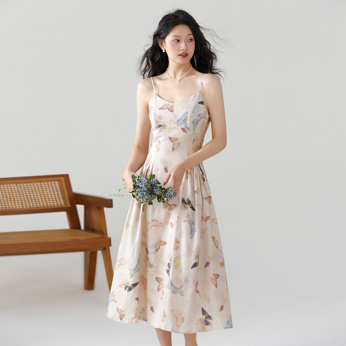 one more高级感v领碎花裙女2025夏季新款气质吊带连衣裙度假裙子