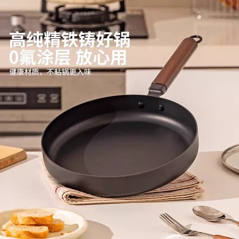 平底锅不粘锅家用深煎炒锅无涂层铁锅煎饼煎蛋牛排煎锅专用电磁炉