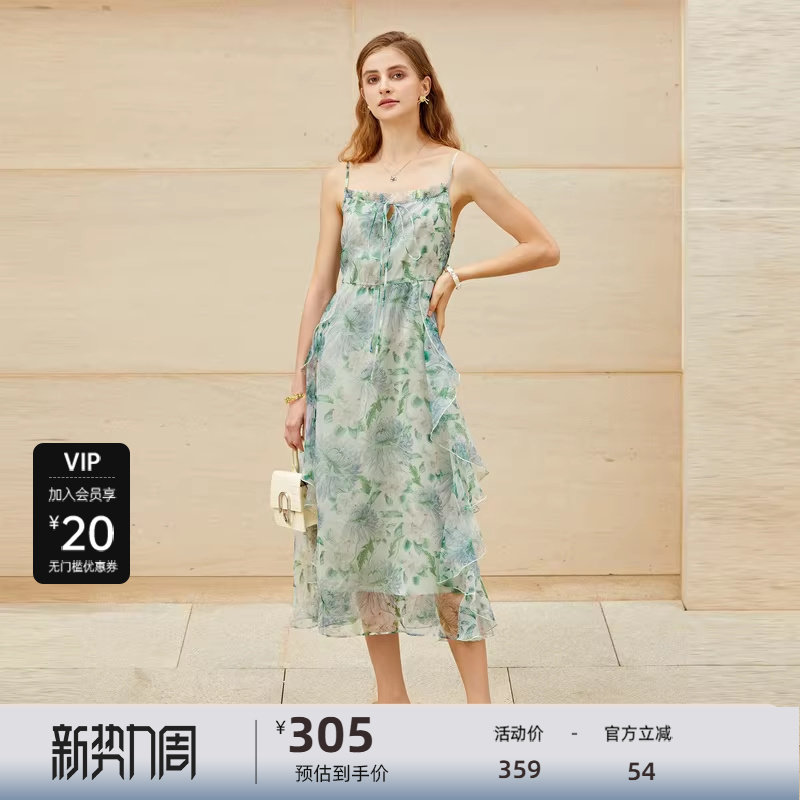吊带连衣裙 木耳边设计 清新印花