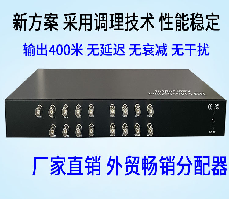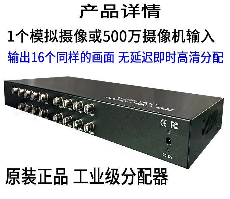 同轴1进16出视频分配器 监控摄像机1入16出BNC高清信号TVI CVIAHD