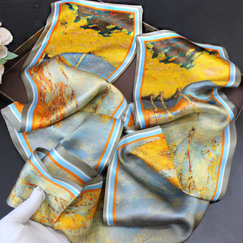 真丝明星同款纯真丝长条双层双面丝巾女春秋时尚长方巾小领巾飘带