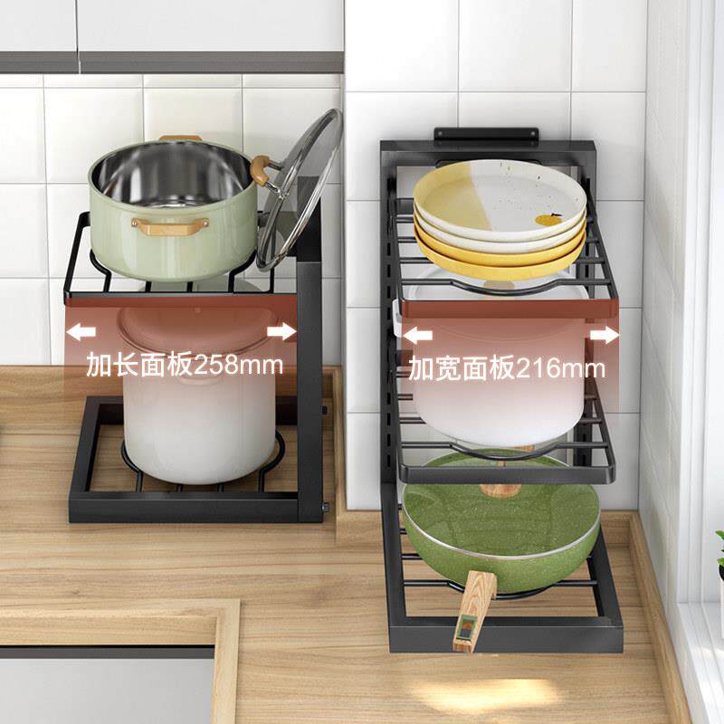 锅具扩容收纳架厨房置物架多层橱柜内下水槽放锅架子多功能可调节