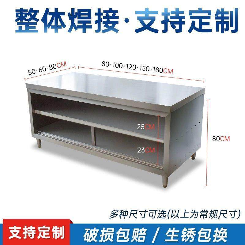 整体焊接304特厚优质不锈钢厨房家用橱柜操作台厨房酒店放碗拉门