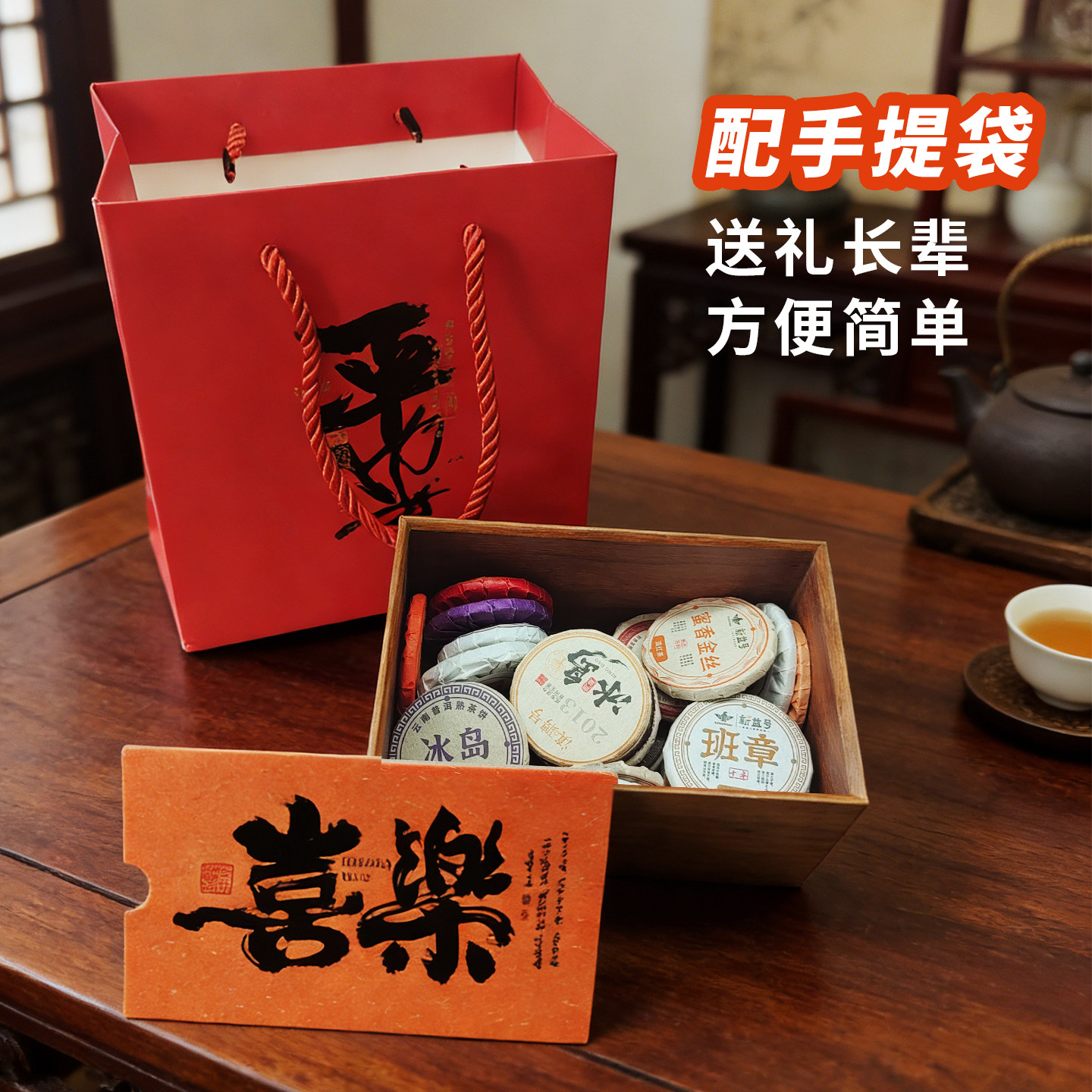 马年茶叶礼盒冰岛普洱茶熟茶糯香老班章生茶陈皮饼小包装盲盒白茶