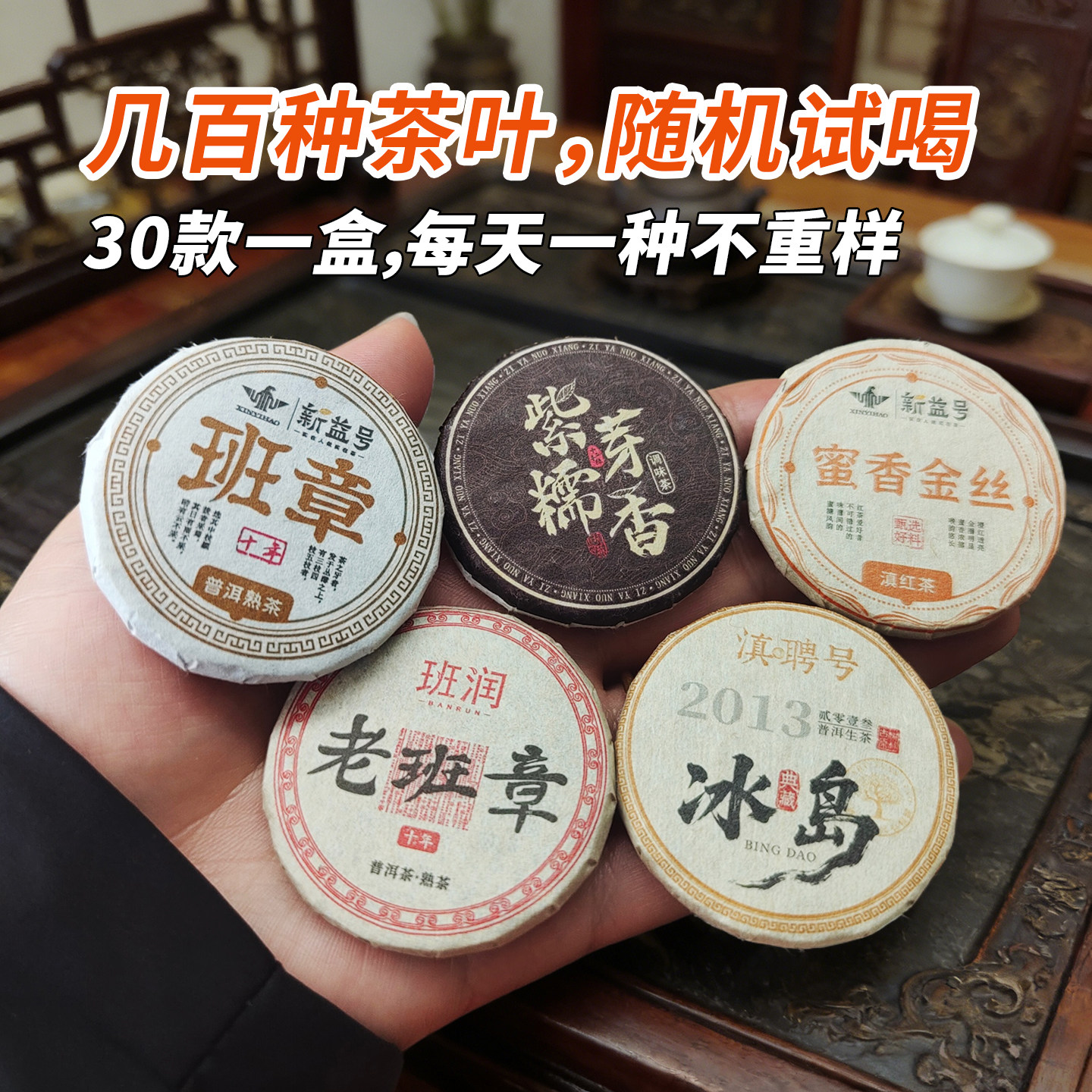 当天发货办公室口粮茶熟茶花果小茶饼30种多品种茶叶礼盒生茶白茶