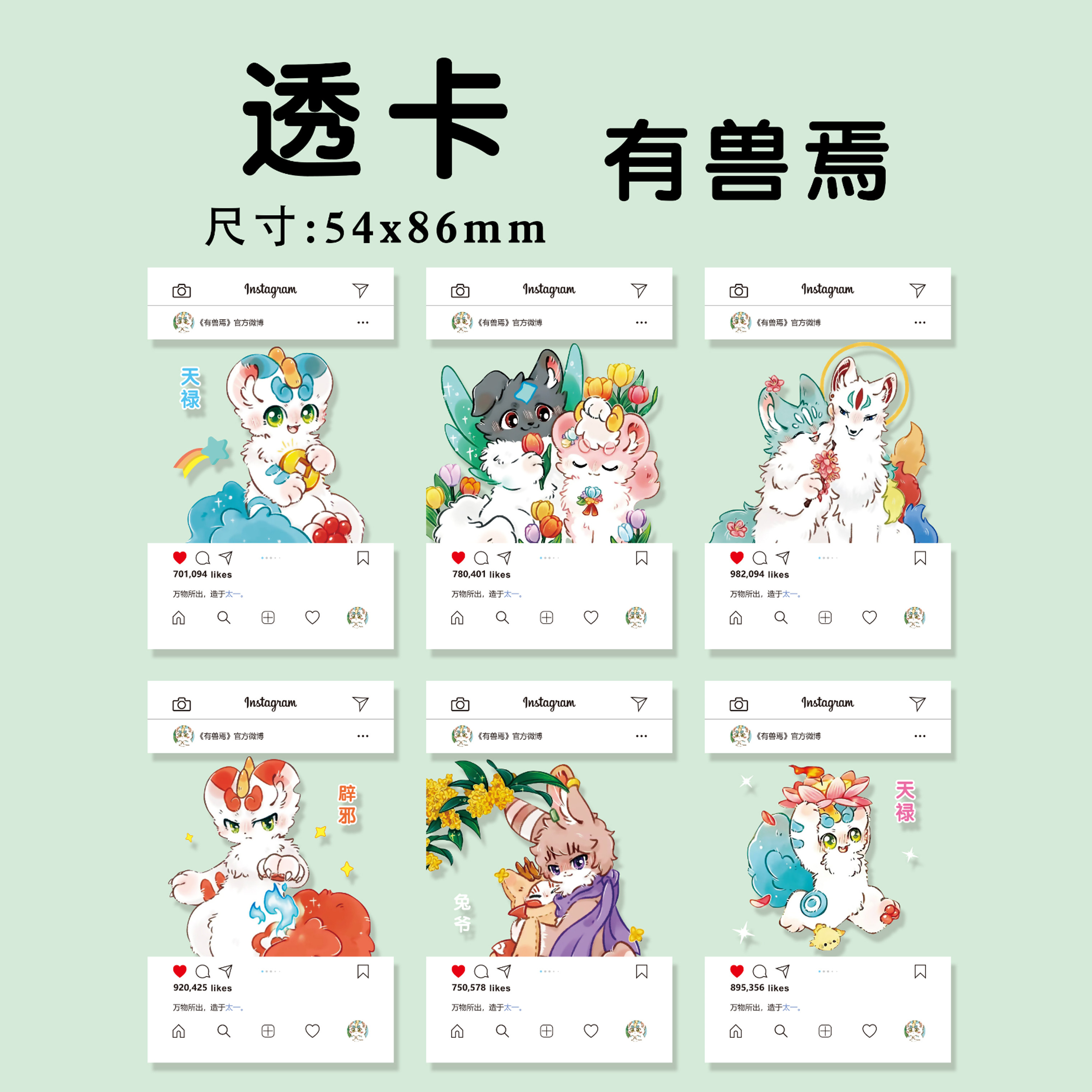 有兽焉透卡 四不像天禄兔爷二次元动漫周边自印拍立得透明小卡片