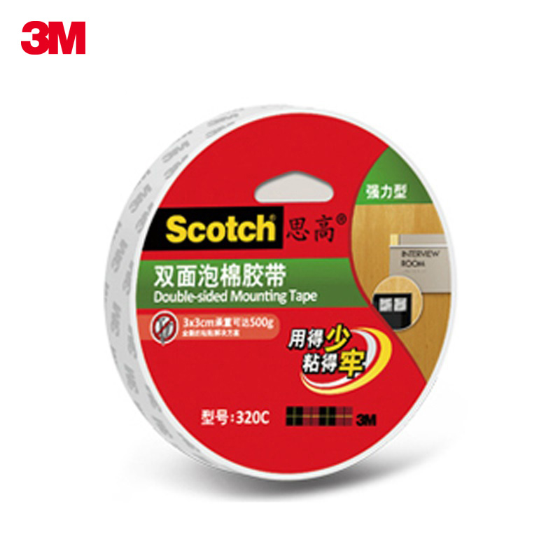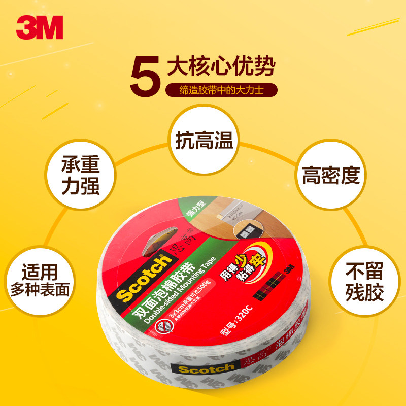 美国3M思高scotch强力双面胶手工胶泡棉胶透明胶家用高粘度纸胶带固定墙面两面胶10米长手账用品联新办公