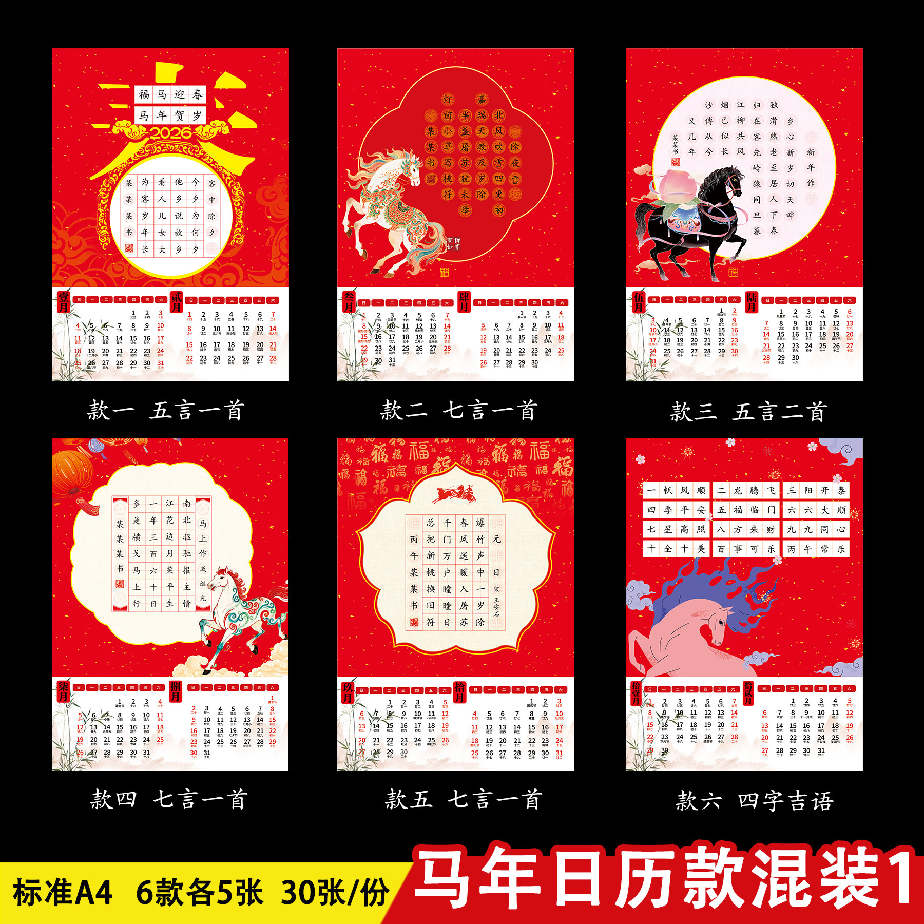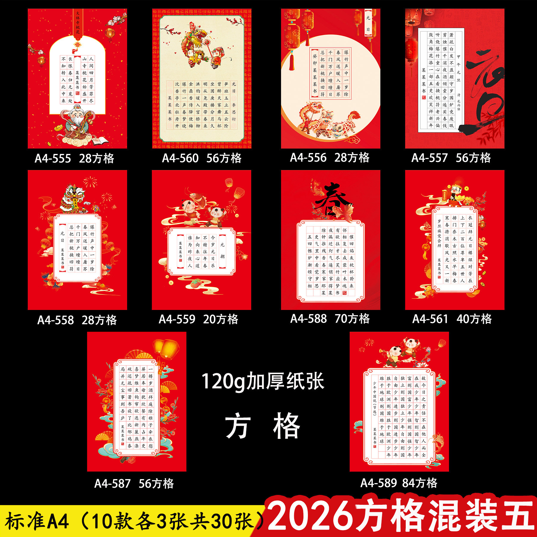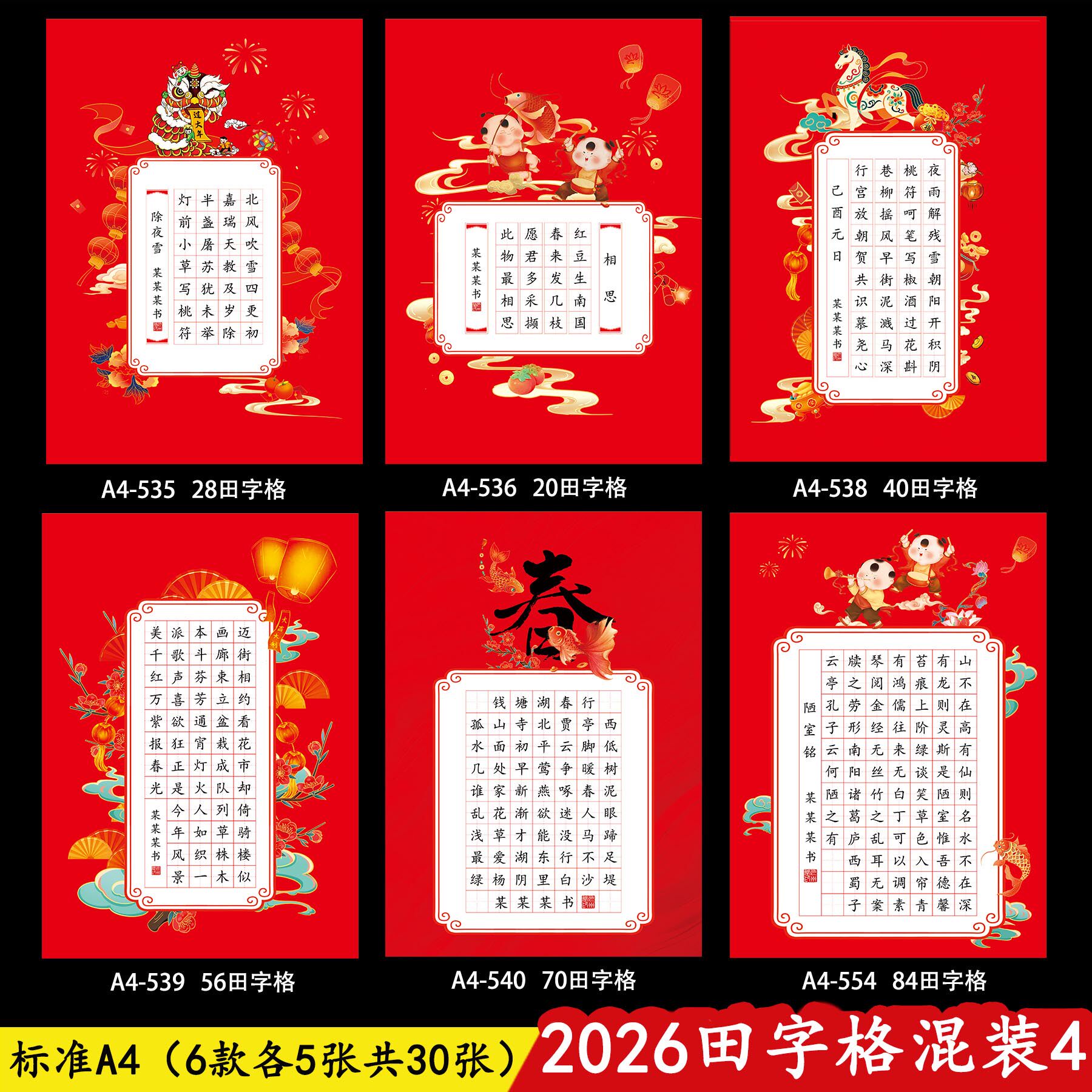 2026硬笔书法作品纸A4新年主题马年春节红色喜庆加厚田字格专用纸