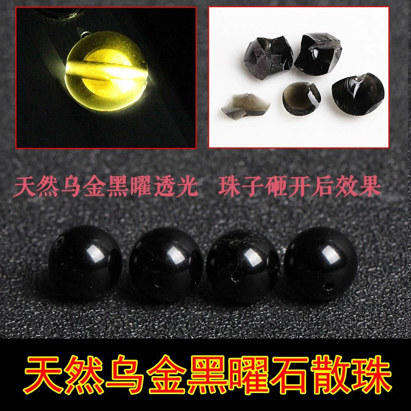 天然乌金黑曜石散珠圆珠手工DIY饰品配件男女手串项链水晶珠子