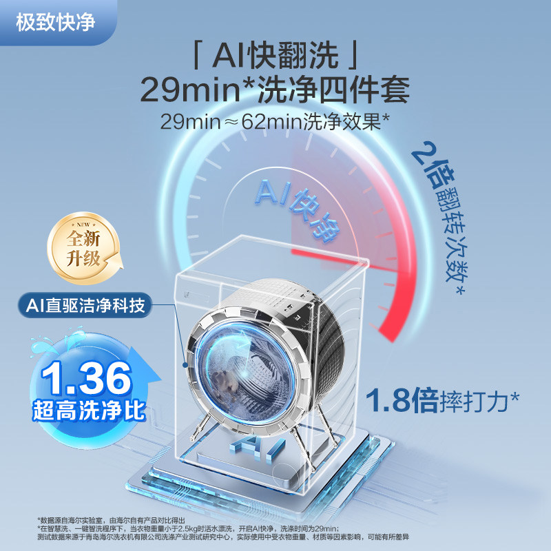 [官仓]海尔云溪5.0冠军机皇12KG滚筒洗衣机全自动大容量洗脱7AD3