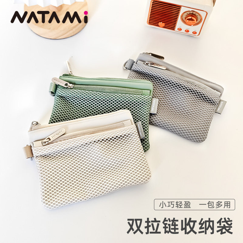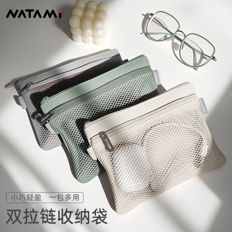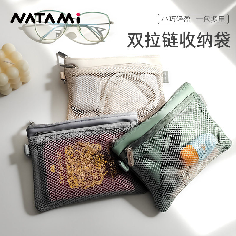 NATAMI奈多美网状轻巧资料袋文件收纳袋多功能网纱双拉链收纳袋便携旅行网格袋小巧轻盈一包多用