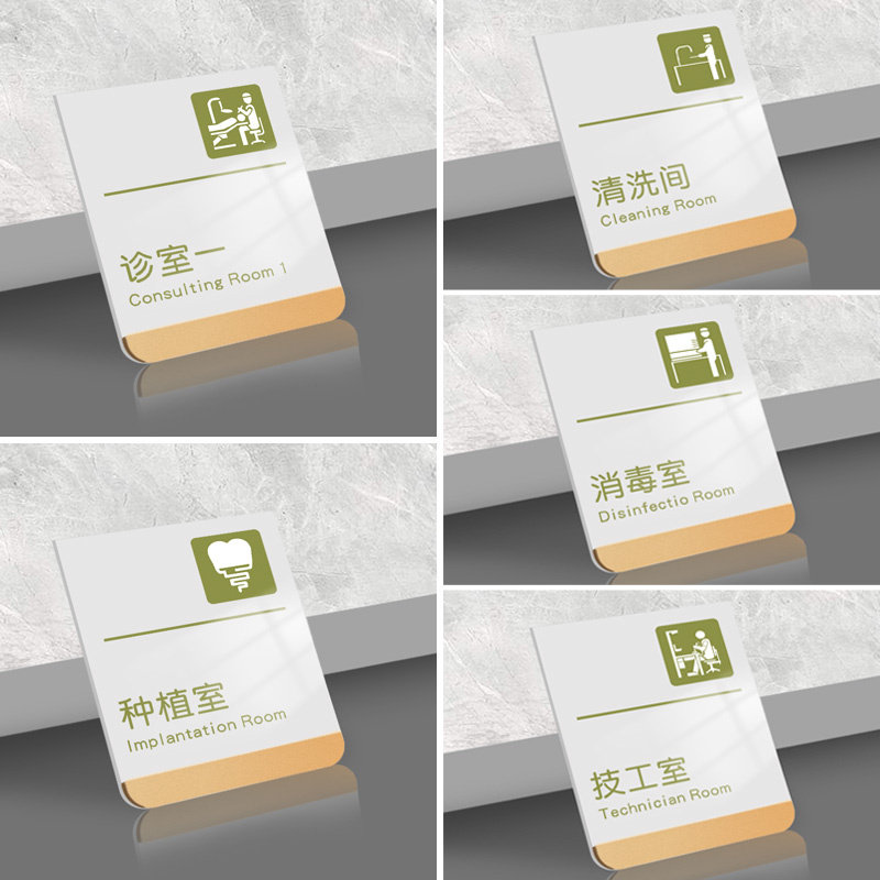 创意清新口腔诊所标识牌牙科诊室门牌定制医院科室牌亚克力白绿色门诊标志美容院诊疗治疗清洗消毒室标示标牌