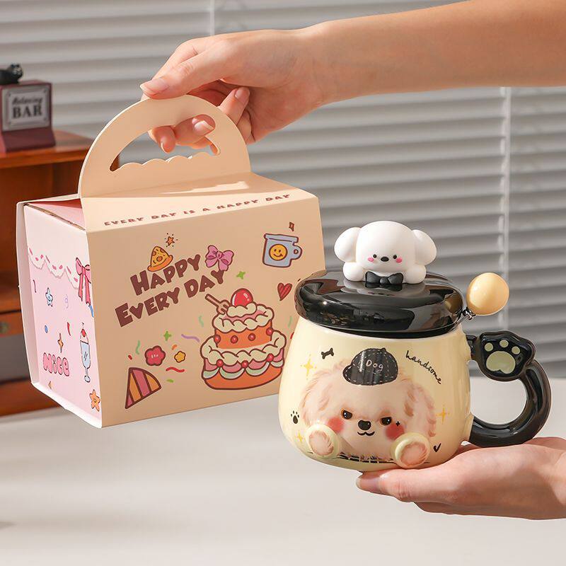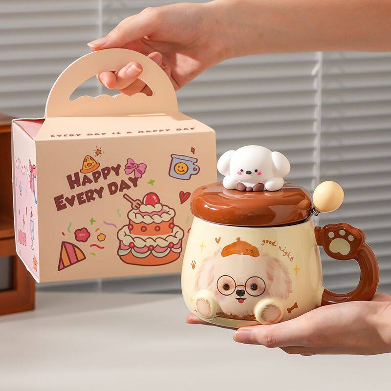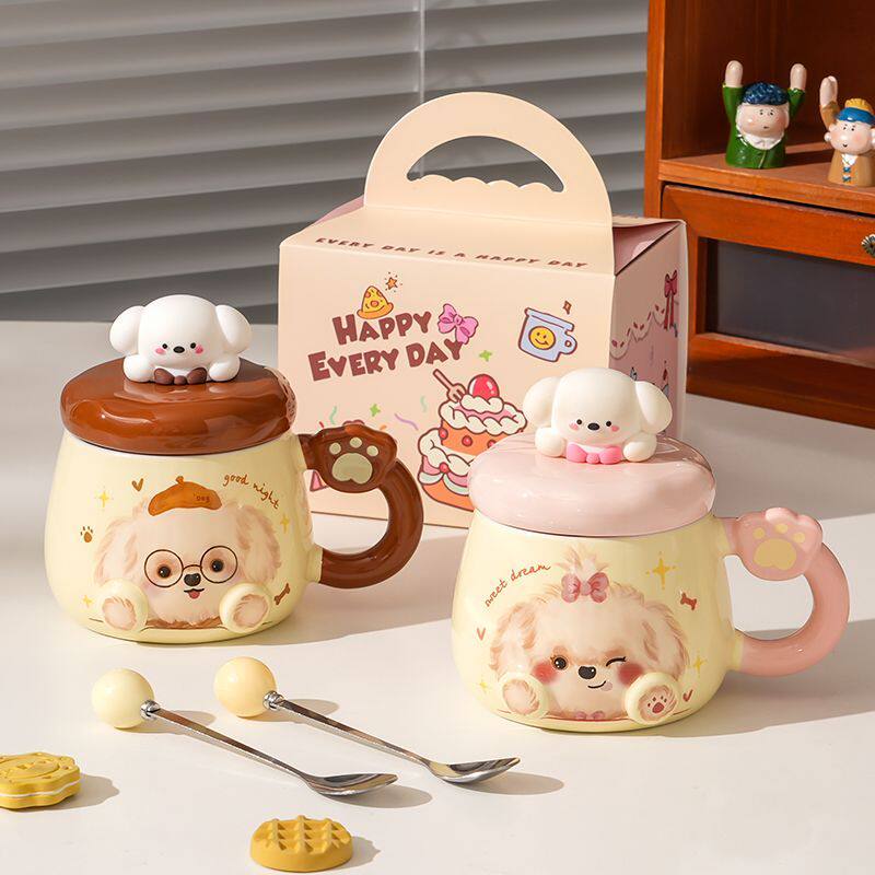 小狗马克杯生日礼物女生高颜值卡通家用带盖勺可爱情侣陶瓷喝水
