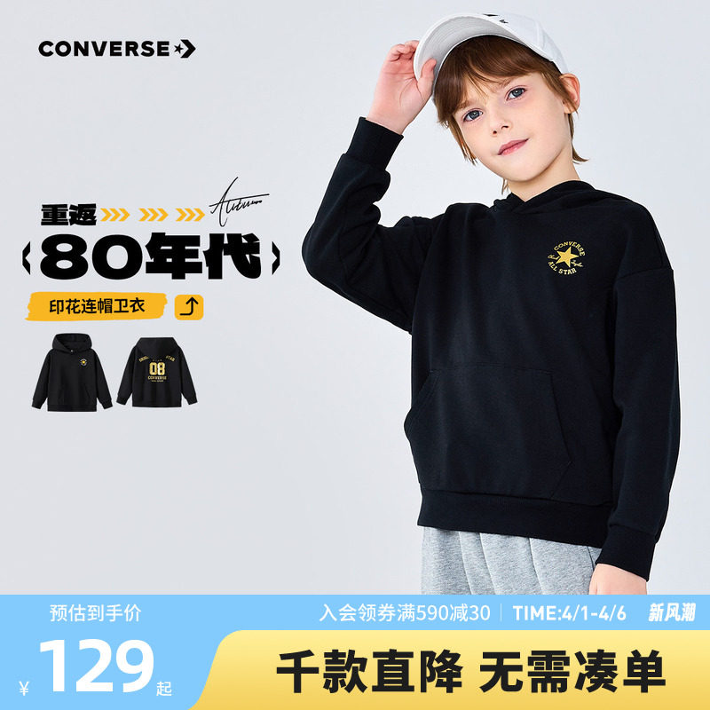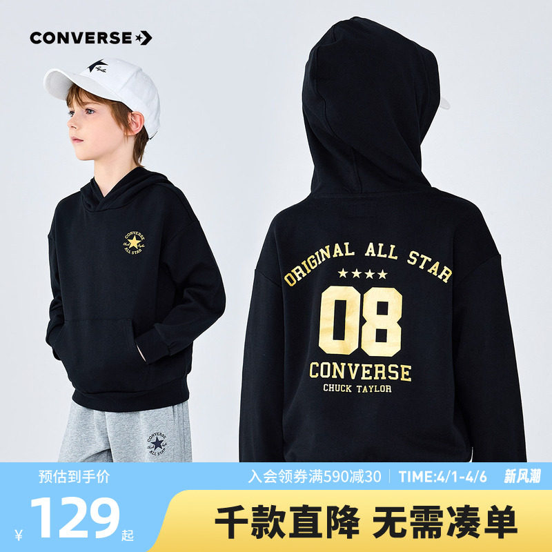 匡威童装男童卫衣青少年春季连帽上衣打底衫中大童女童休闲复古